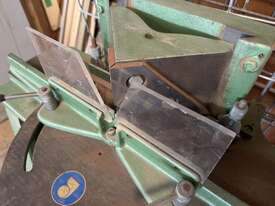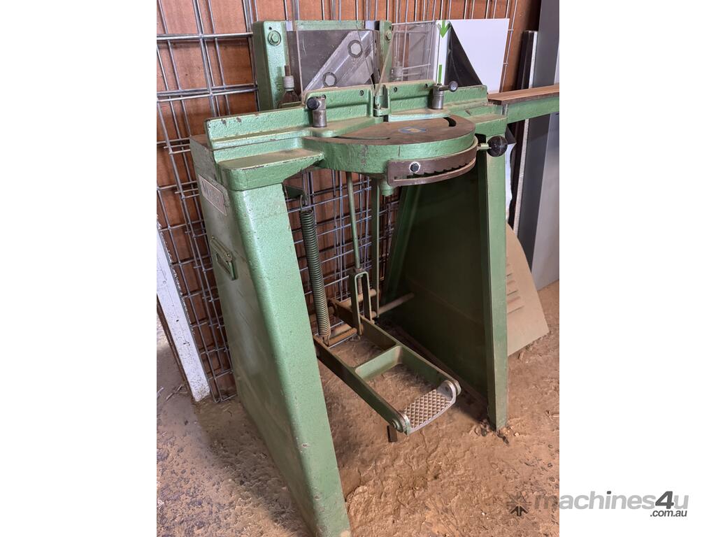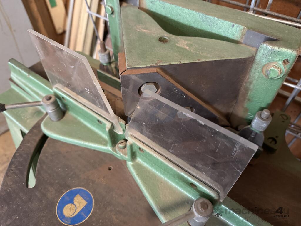 The horizontal movement of the knife block is adjustable in steps. The sliding longitudinal stop and measuring scale ensure accurate repeat work.it has a special lever system for wide profiles - the knife block has stepped horizontal adjustment allowing progressive cuts until the full width is achieved. Twin return springs automatically bring the knives back to start position.