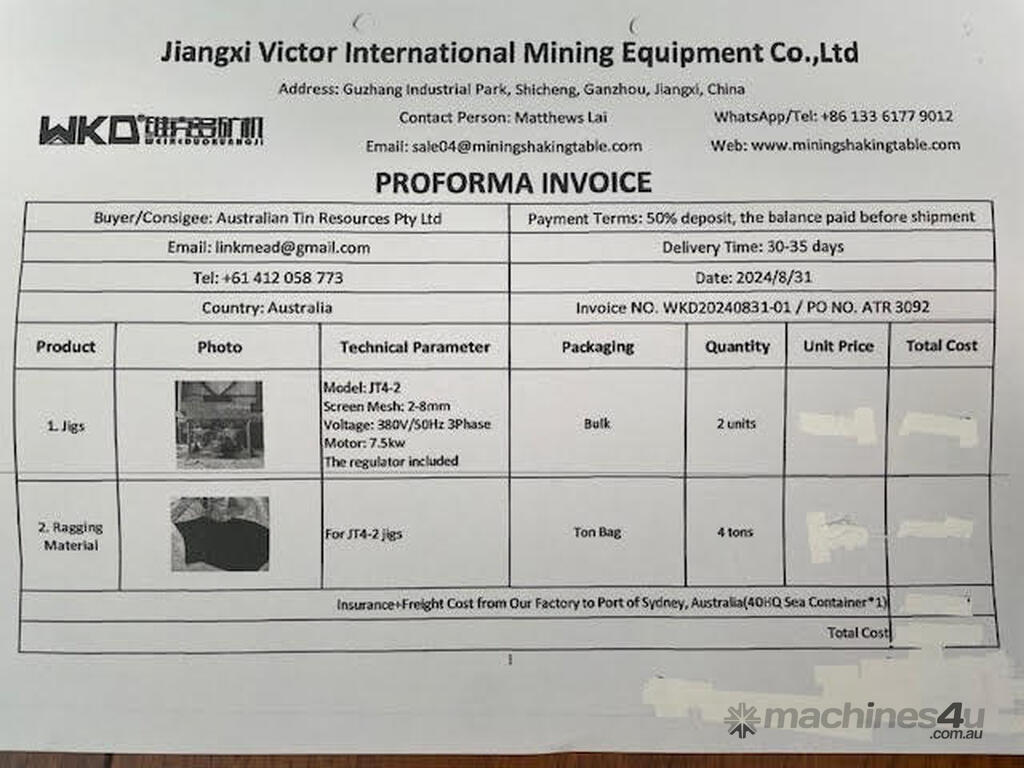 For Sale: JT4 $38k for 2x Mineral Processing Jigs – Almost Brand New, Never Used