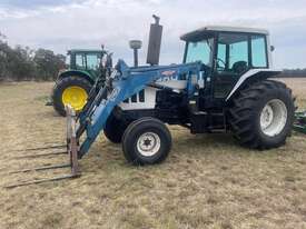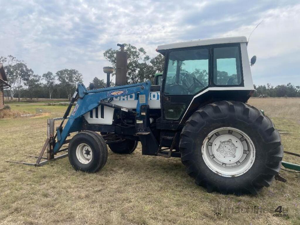 Ford 8401 Tractor, Air Cond cab, good rubber, 3PL, indicating 10,545 hours, hay spears and GP bucket. Serial Prefix AME1, Serial No B377845 Model Code EZ215M, F.P.O 420856 Eng No G461857.