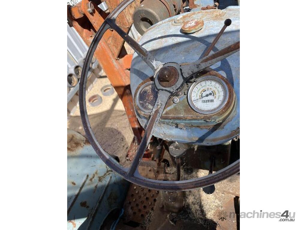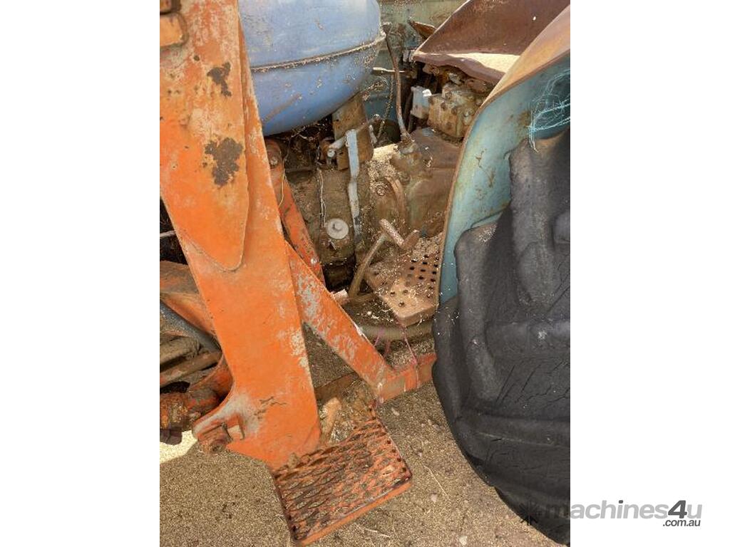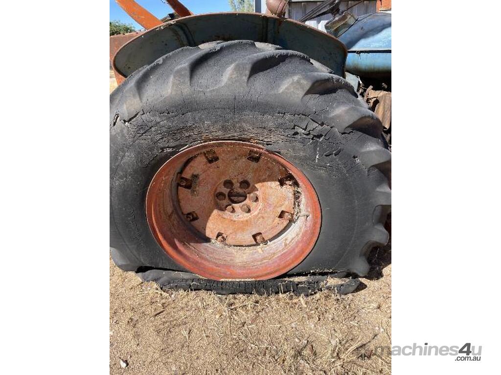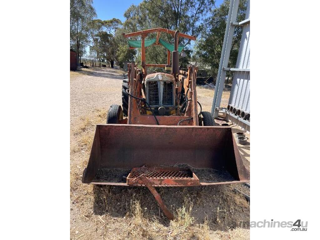 Fordson Major tractor with heavy duty front end loader and ROPS frame. It has an external hydraulic reservoir on the rear of the tractor with filter. The 2 tyres on the left side are holding air but the other two are flat ( would need replacing ). The hours are unknown, it was running when parked but hasn't run for a few years. No battery.