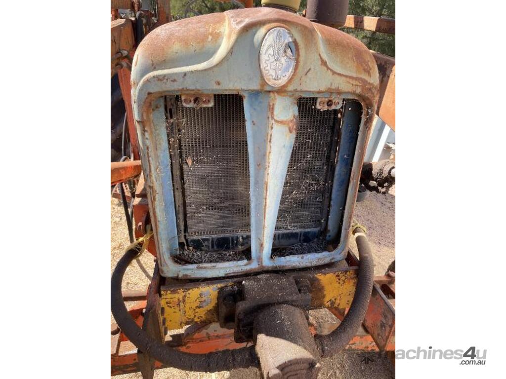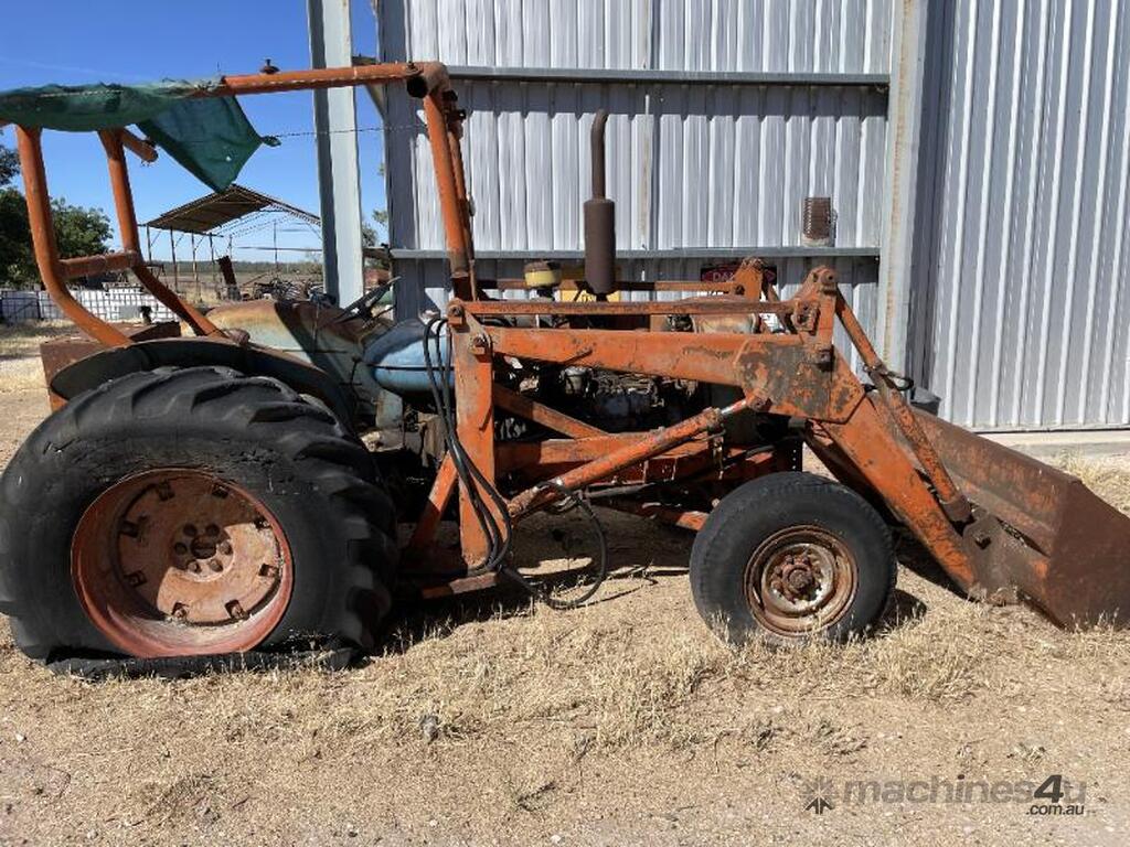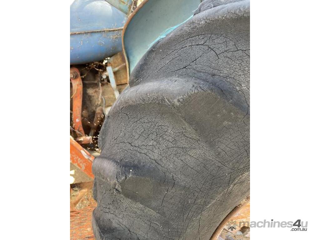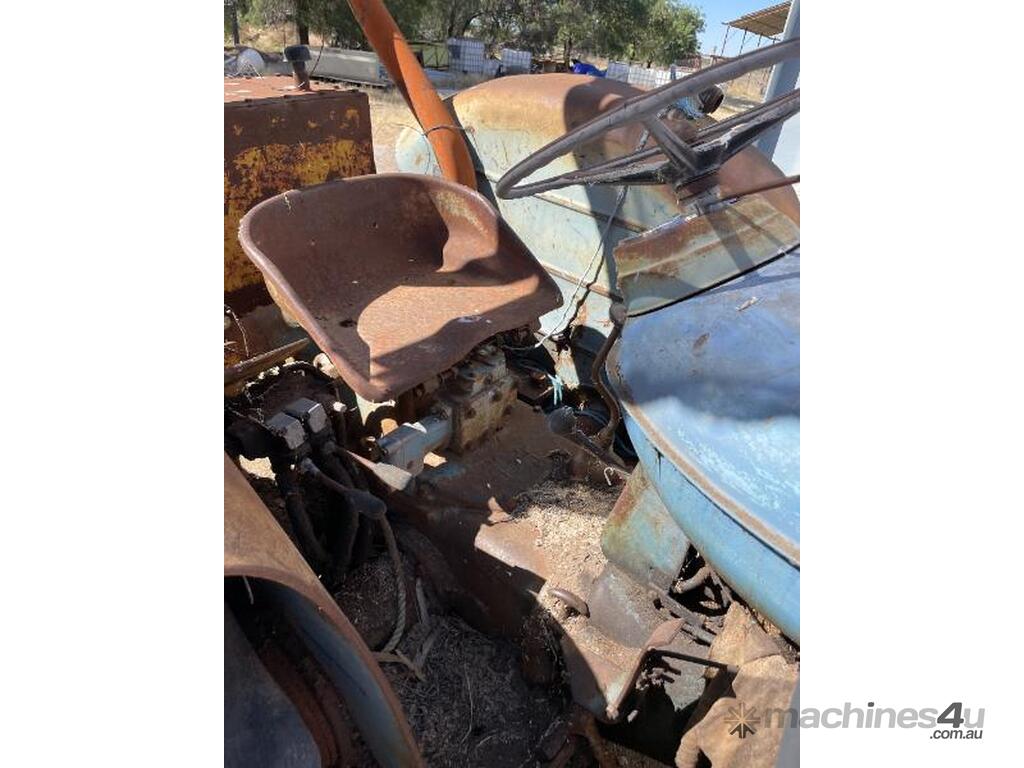 Fordson Major tractor with heavy duty front end loader and ROPS frame. It has an external hydraulic reservoir on the rear of the tractor with filter. The 2 tyres on the left side are holding air but the other two are flat ( would need replacing ). The hours are unknown, it was running when parked but hasn't run for a few years. No battery.