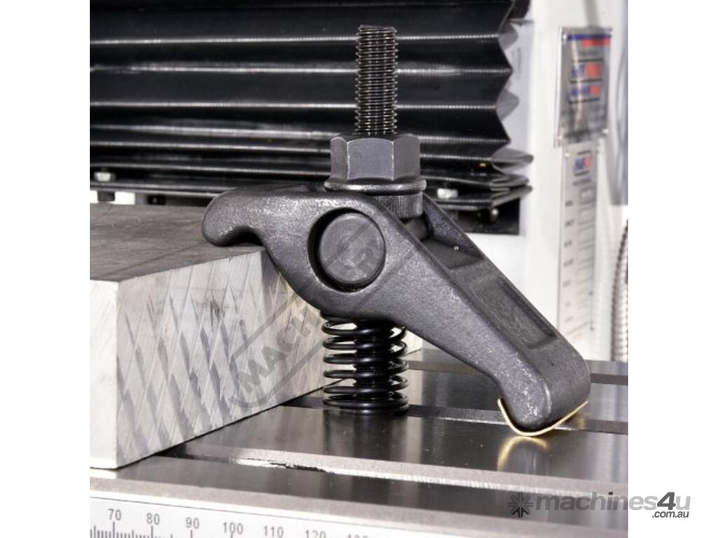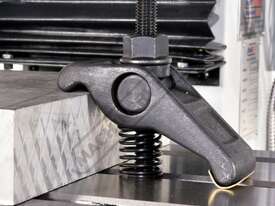 The rugged forged steel pivot clamp offers instant height adjustment without the need for blocks or shims. Its all-in-one construction enables quick setup and eliminates the risk of losing clamp pieces. The clamp can be turned 90° in either direction for loading clearance, and the removable brass heel protects the machine table.