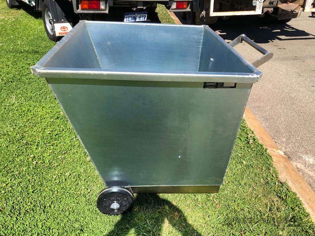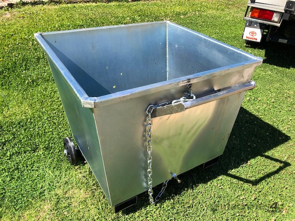 Fork Tipping Bin Wheeled/Forklift Pocket. Skip Forklift Carriage With Safety Chain. 2x Front Wheels And Rear Swivel Wheel/Push Handle. 65 Cubic Metres. 1120 X 1050 X 860 High