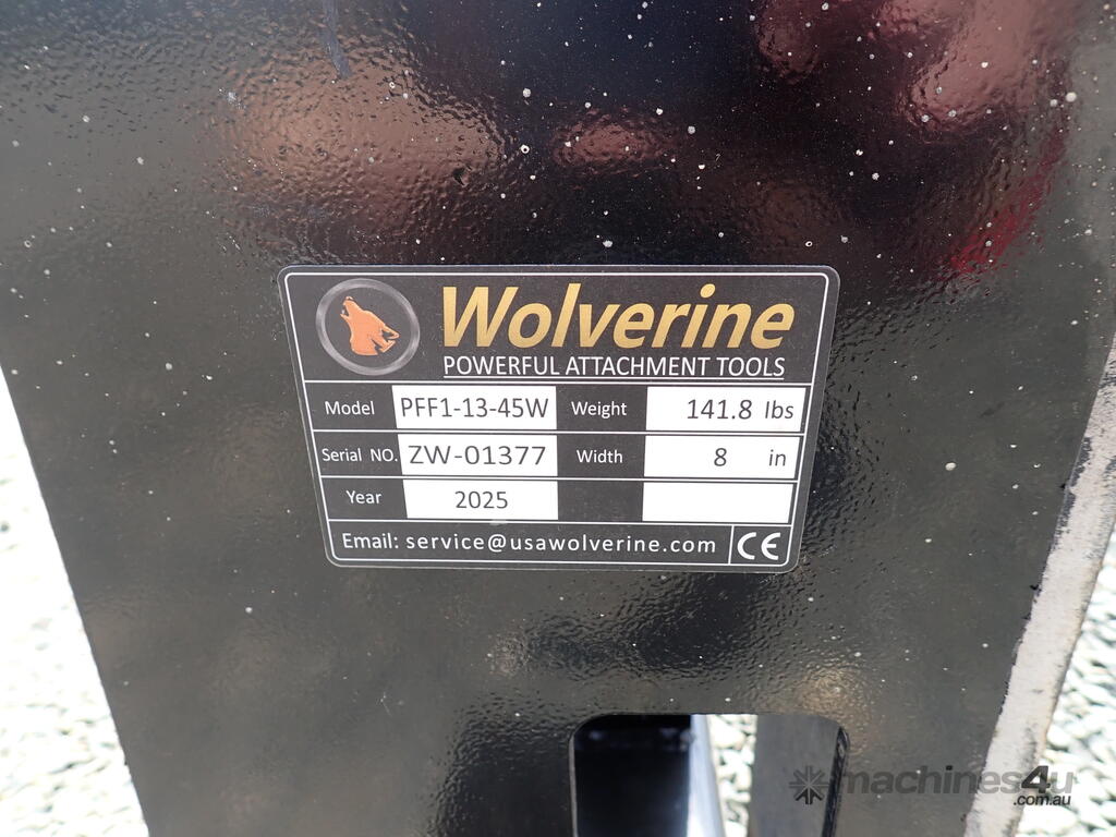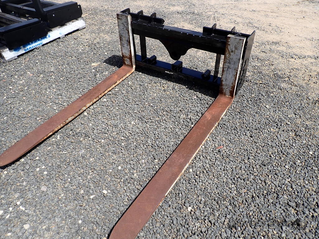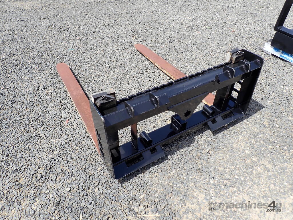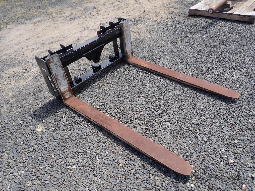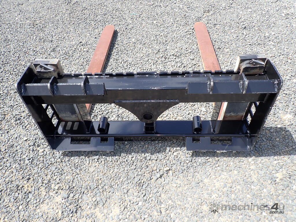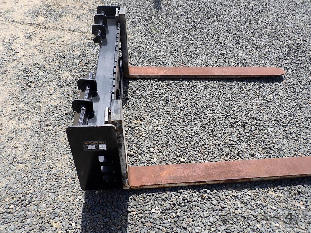 Fork carriage for skid steer, 2025 build, Wolverine brand, 1160mm wide, 1370mm long class 2 forks, carriage also has provision for a towbar tongue or 1 large hay spear or 2 small hay spears, (spears and tow tongue not included), unit is in as new condition ready for work.
