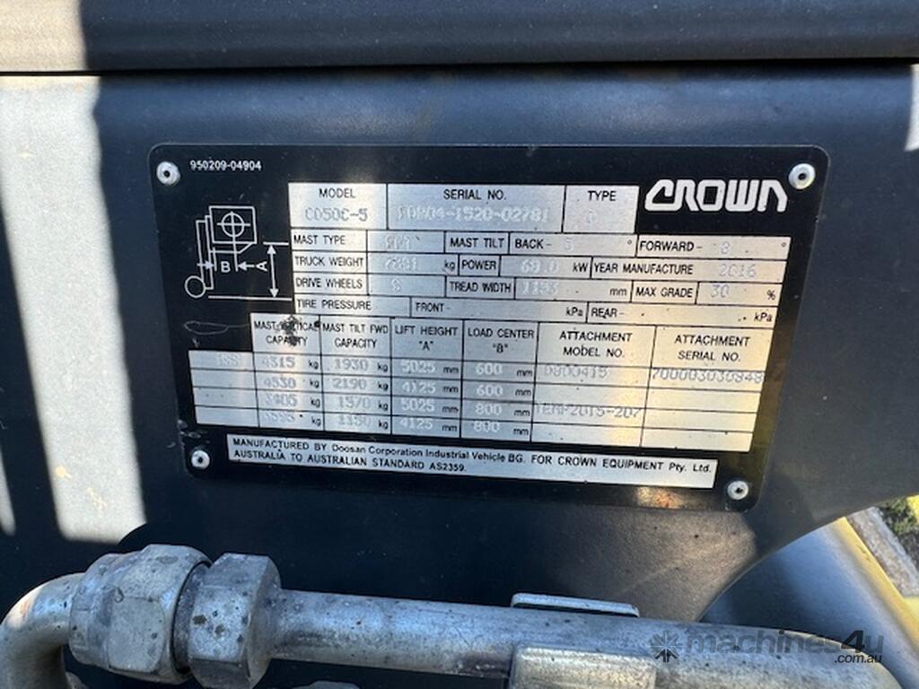 Forklift Crown CD50C 5 Tonne Diesel Scales Side Shift 2016 4014hrs :      $22,727 AUD($25,000 Inc. GST)