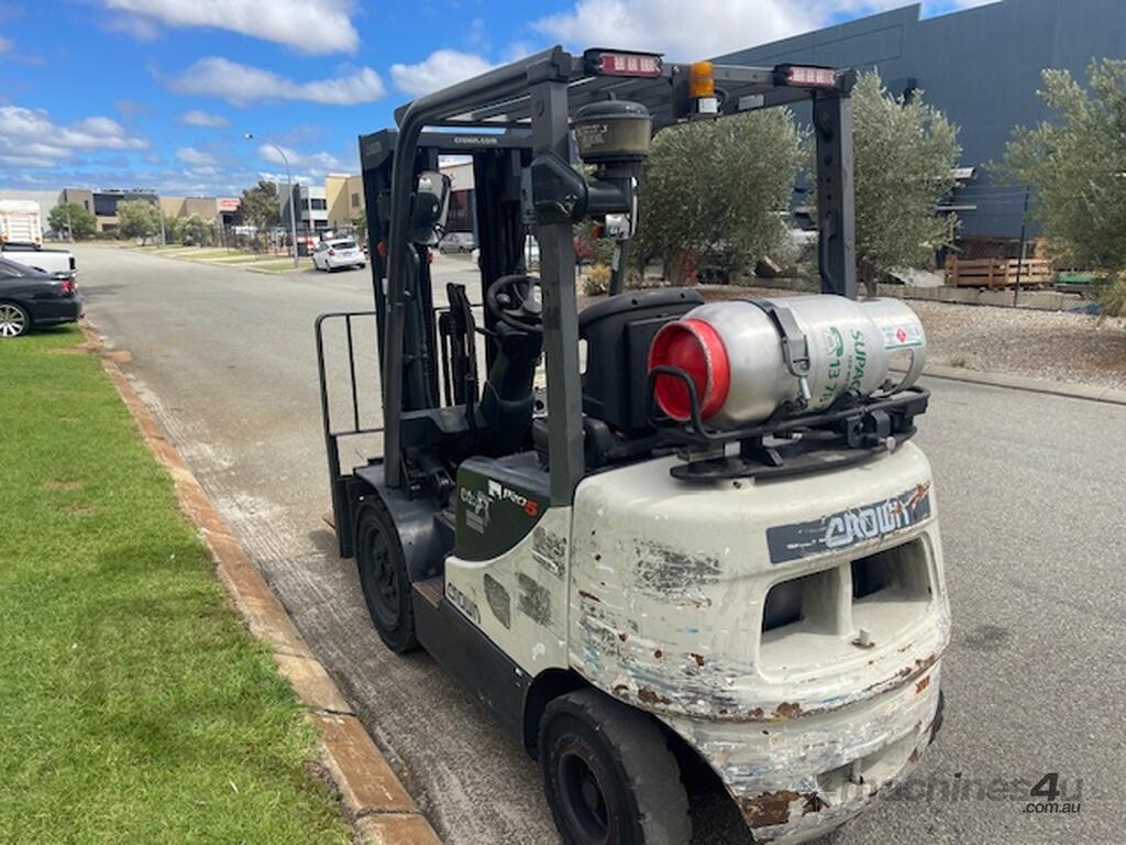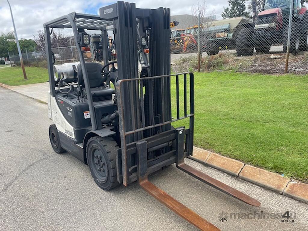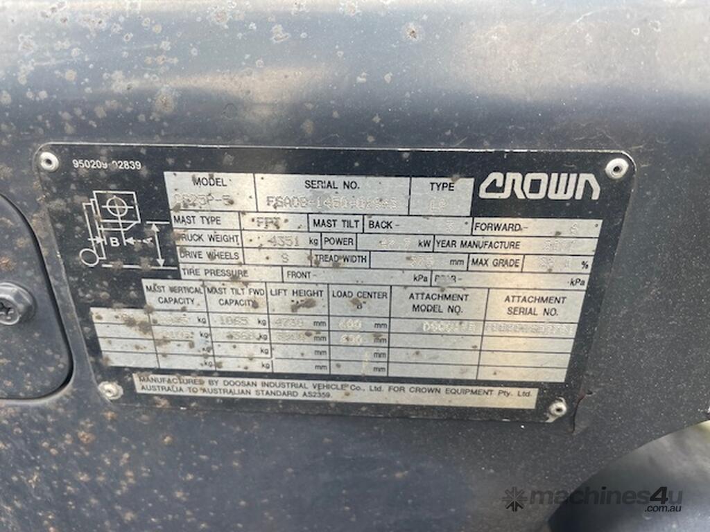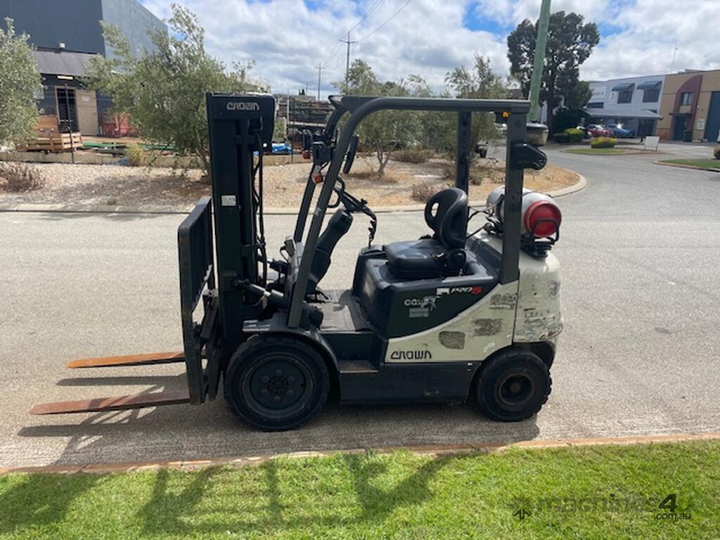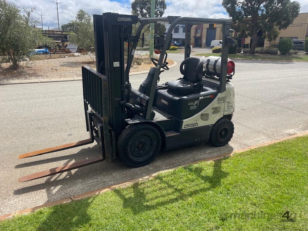 Forklift Crown CG2.5 2.5 Tonne Gas Container Mast Side Shift 2011. 3 stage container mast. Fork posi :      $10,909 AUD($12,000 Inc. GST)