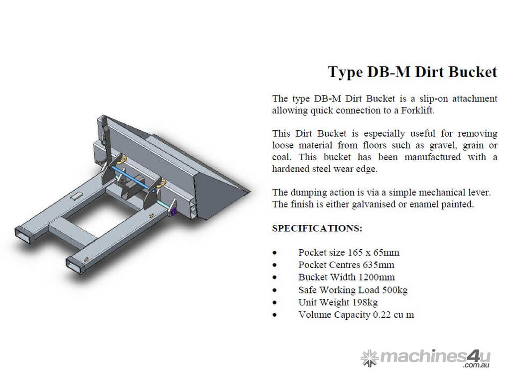 The manual dirt bucket attachment (DB-M) is beneficial in removing loose material from floors such as gravel, grain or coal.