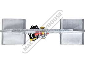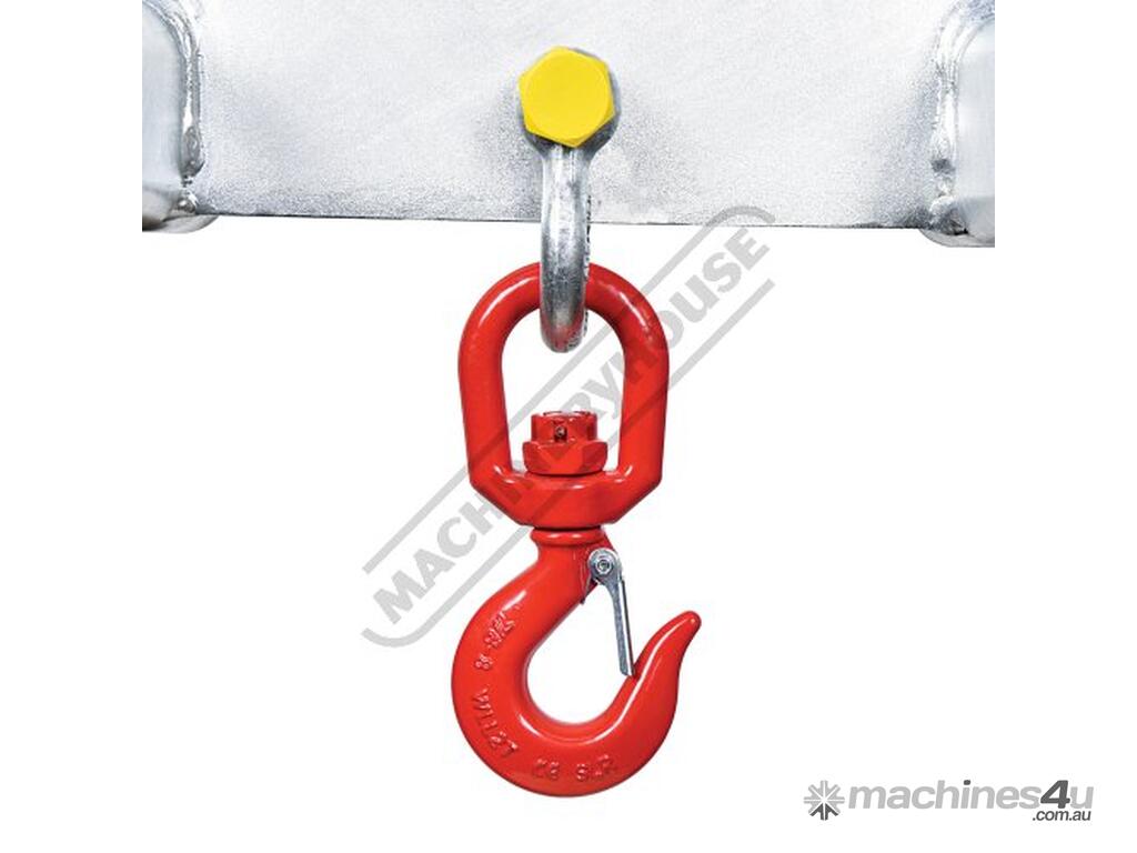 In accordance with AS 2359.1, forklifts must be de-rated by 20% when using lifting attachments. Ensure the forklift used has a minimum rated capacity of 2.5 tonne before deration to safely support the 2 tonne WLL of this jib attachment -