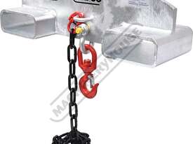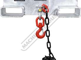 The FLA-2T-2G is rated at a Working Load Limit (WLL) of 2 tonne (2000 kg) when correctly positioned and secured on the forklift tines, with the load point located 600 mm from the forklift mast and the safety chain fully attached.
