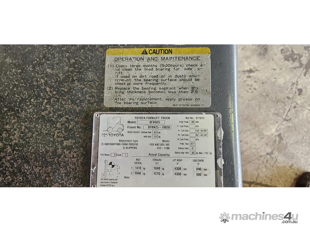 Used Toyota forklift 2.5t with new batteries, charger and seat. Good working order and ready for work.