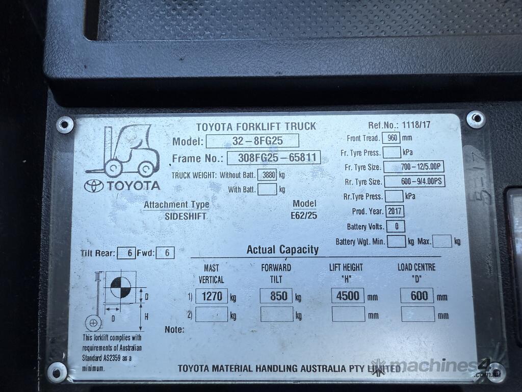 2018 Toyota 32-8FGK25 Deluxe Forklift – 2.5 Tonne Capacity