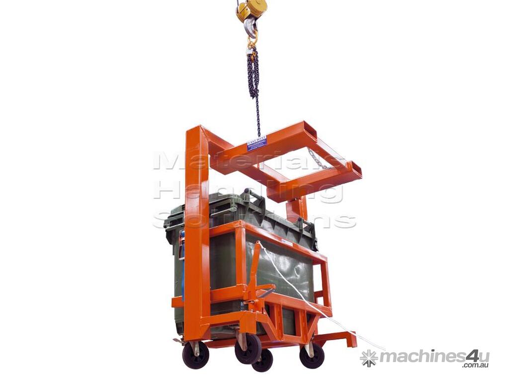 The 660L and 1100L wheelie bin tipper is a tool used to lift and tip large wheelie bins into a larger container.