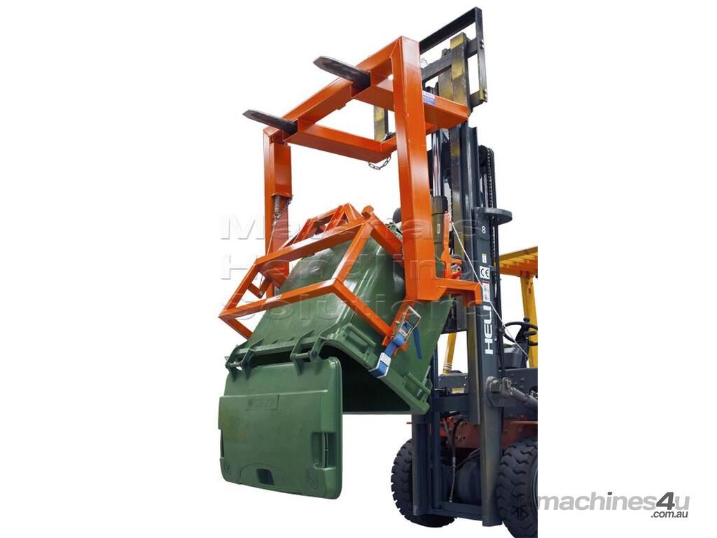 The use of this forklift attachment can help to improve efficiency and make the task of handling large wheelie bins safer and easier for the operator.Top of Form