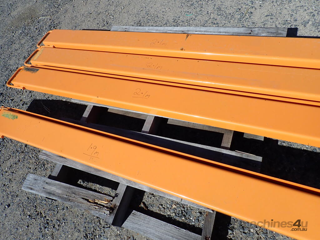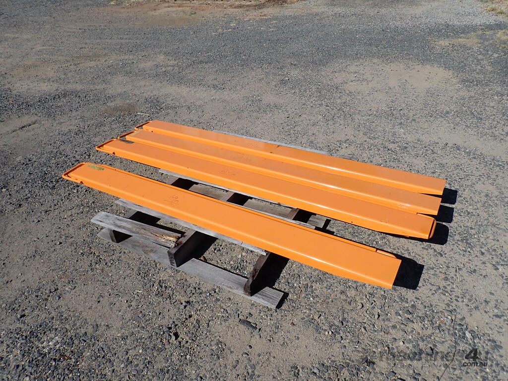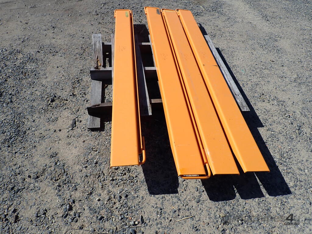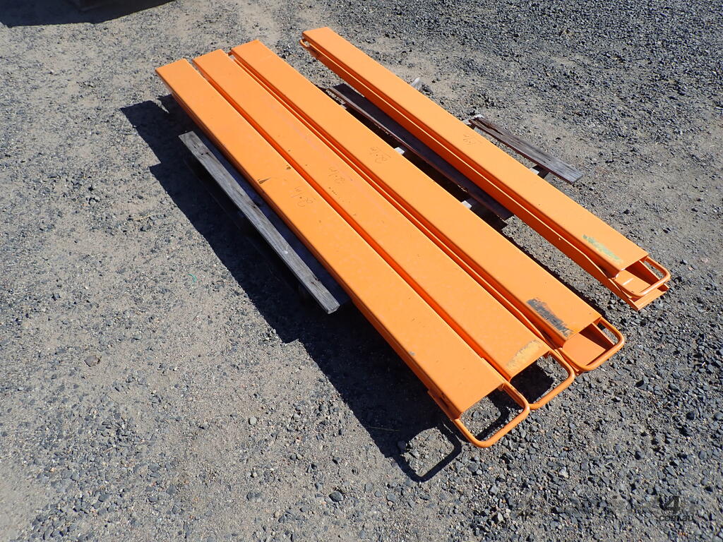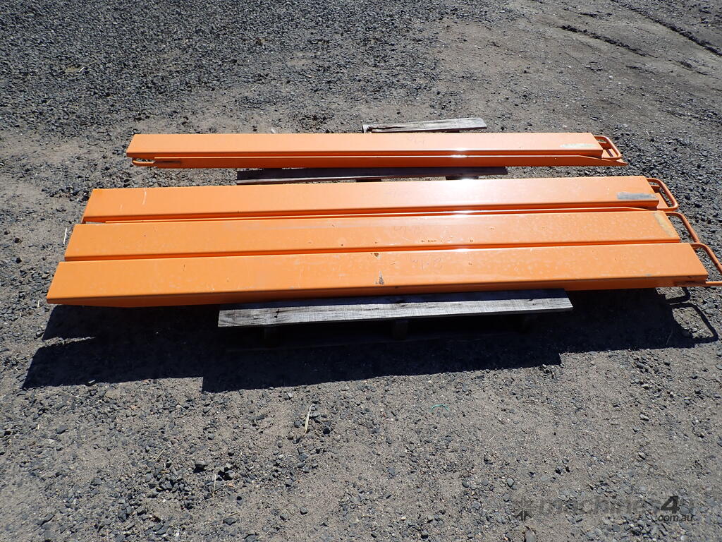 Forklift slippers/fork extensions, custom made, 4 sets available 1.9m to 2.1m long, price per set $330 inc gst, 140mm wide inside dimension, suit up to 3 ton forklifts, very handy around the yard or workshop, unused and in as new condition, ready for work.