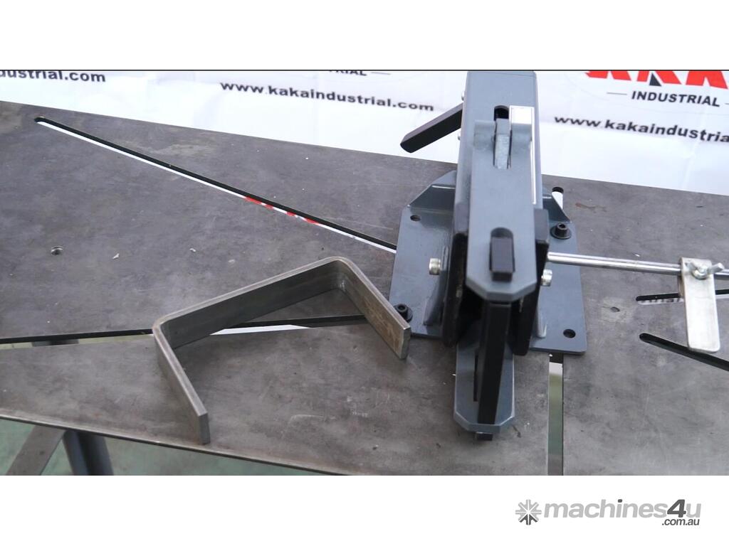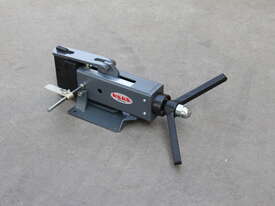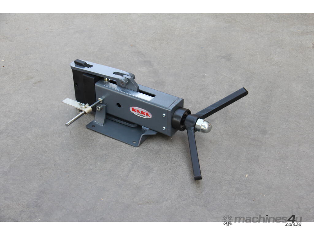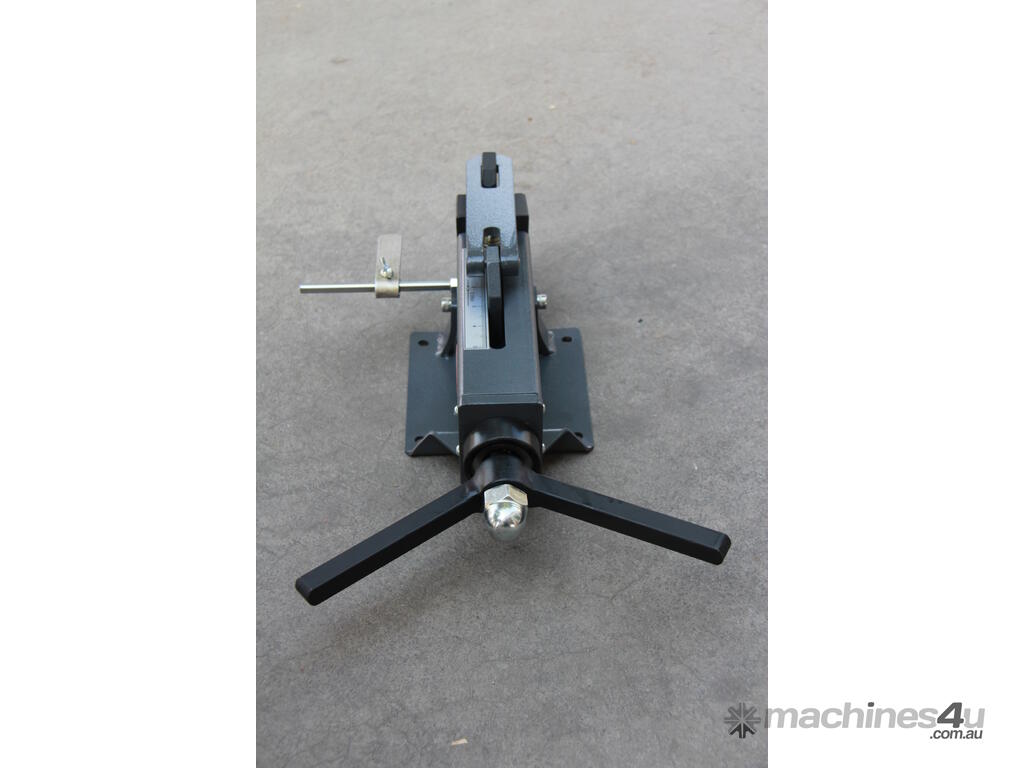 The 100 mm Form Bender FB-4 is a robust, manual, bench-top press brake designed for bending mild steel, aluminium, and ornamental iron. This brake bender offers a compact solution for fabrication tasks that require sharp, precise angles up to 90 degrees. While saving space compared to full-size hydraulic presses, this bender is capable of generating significant force (typically around 2.5 tonnes of pressing force) via a simple hand-crank operation. It is an ideal tool for hobbyists, metal artists, and small workshops in Australia needing to create custom brackets, hinges, mild steel mounts, or other non-production components. The bender is easily bolted to any stable workbench and is highly valued for producing repeatable, clean bends in flat stock metal.