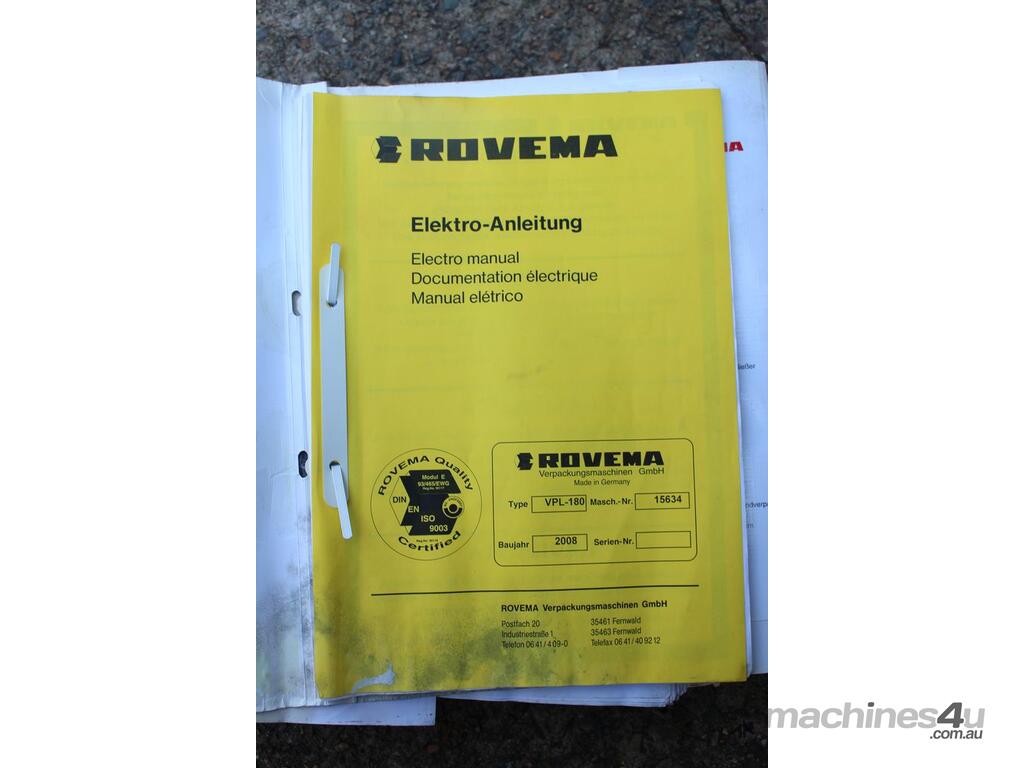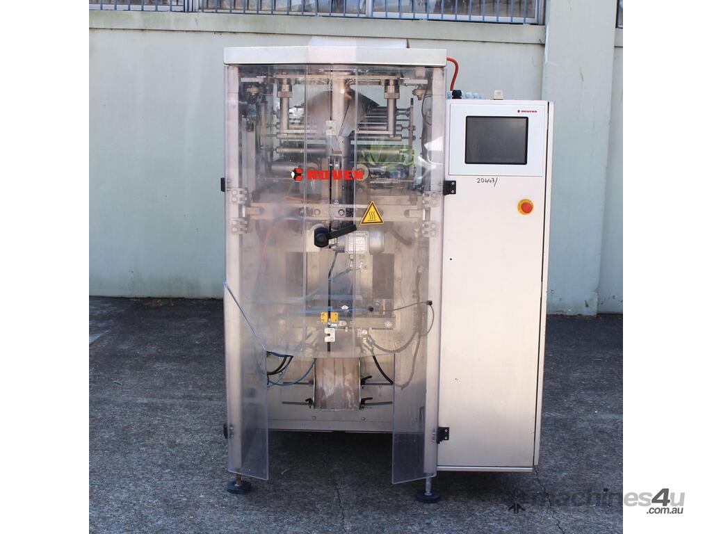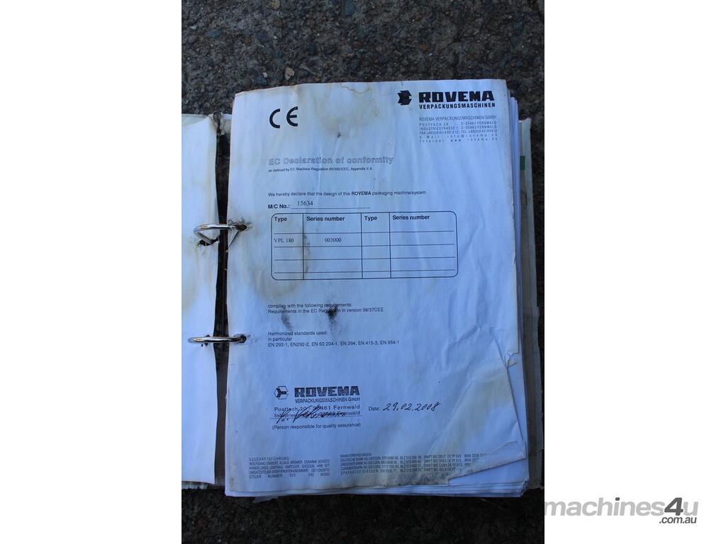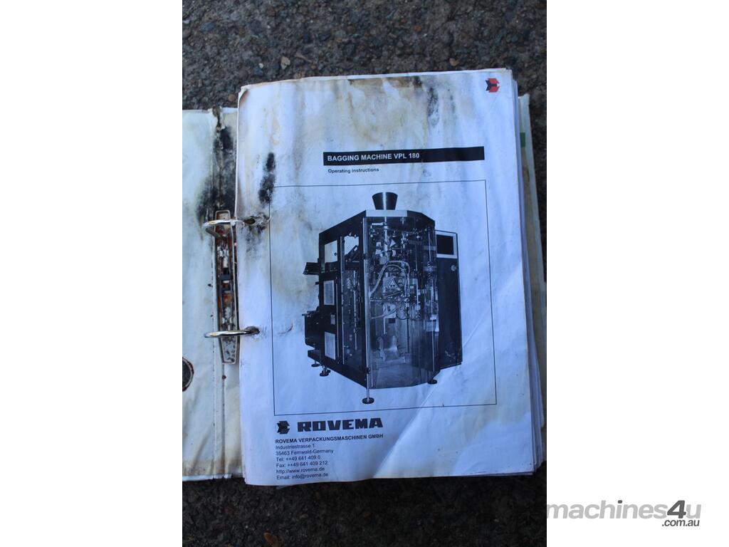 Vertical Form Fill & Seal Machine, "Rovema" model VPL-180, stainless steel frame construction, built 2008, complete with stainless steel product contact parts, designed for automatic vertical form, fill and seal packaging applications in food and general industries, supplied with operator manual