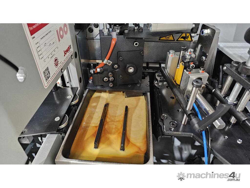 this machine is not equipped with Gluebox or hot air / laser system. It also does not have a premelter. Some manual work is still required and it also cannot safely make coffee (yet!) gluepot gets too hot :)