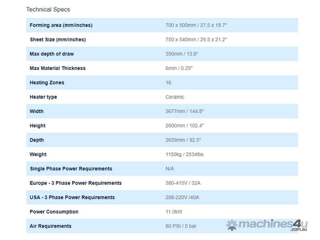 Wago control system with 10" colour touch screen, real time adjustments, 1% heater increment control, Formech Cycle View and 40 preset memories.