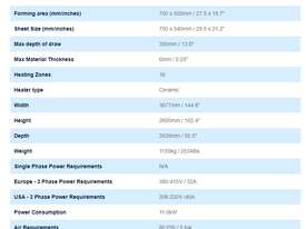 Top and bottom heaters to form demanding materials and decrease cycle times (16 zones top heater, 10 zones bottom heater).