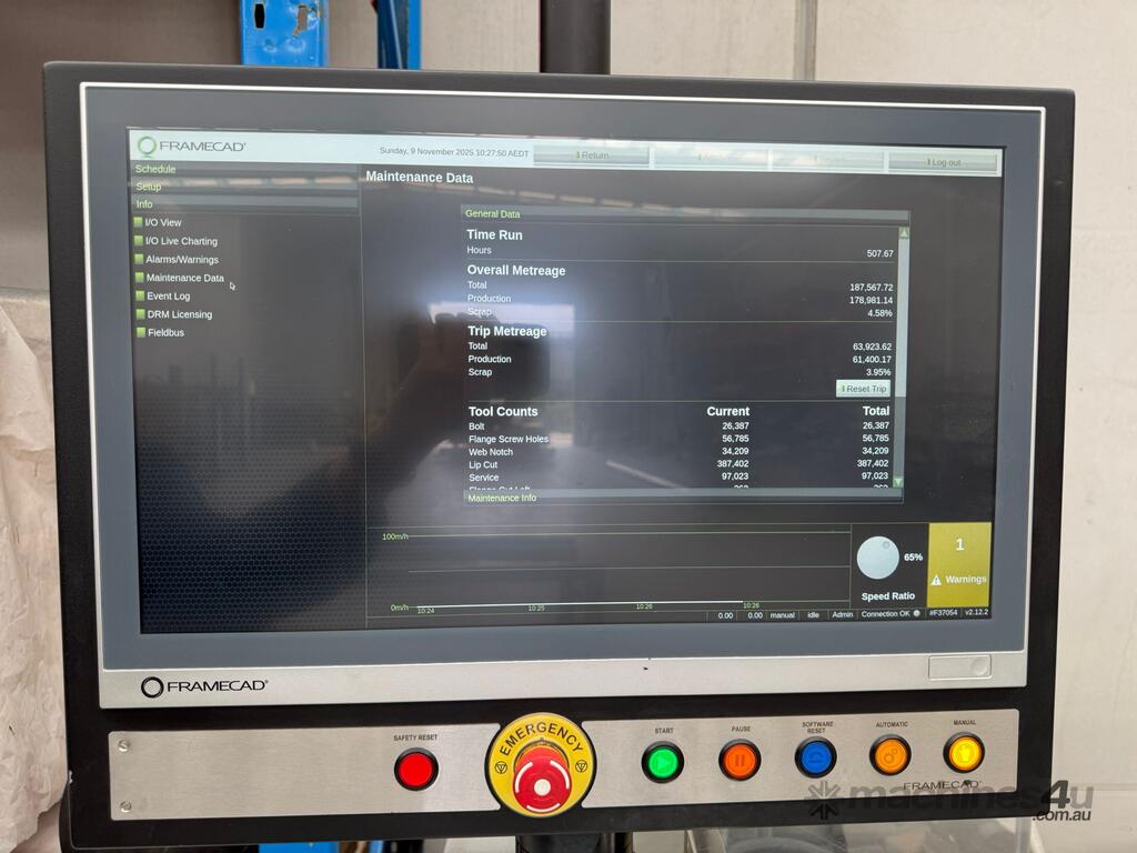 With only 504 production hours, this machine is virtually new. Rarely available on the secondary market, it offers buyers the chance to secure one of the best performing light-gauge steel framing machines in the world, backed by the reputation of FRAMECAD as an industry leader.