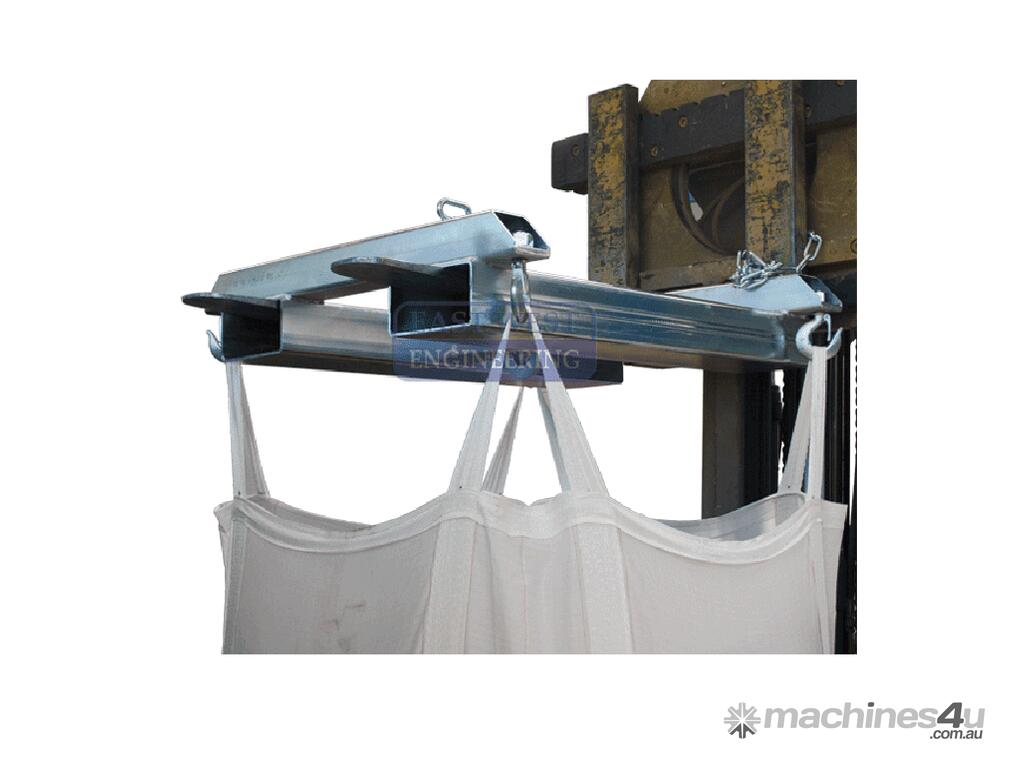 Designed to safely lift bulk bags using a forklift 4 way safety hooks to secure the loops in a bulk bag Secured to forklift with a safety chain Can be used with a crane as well