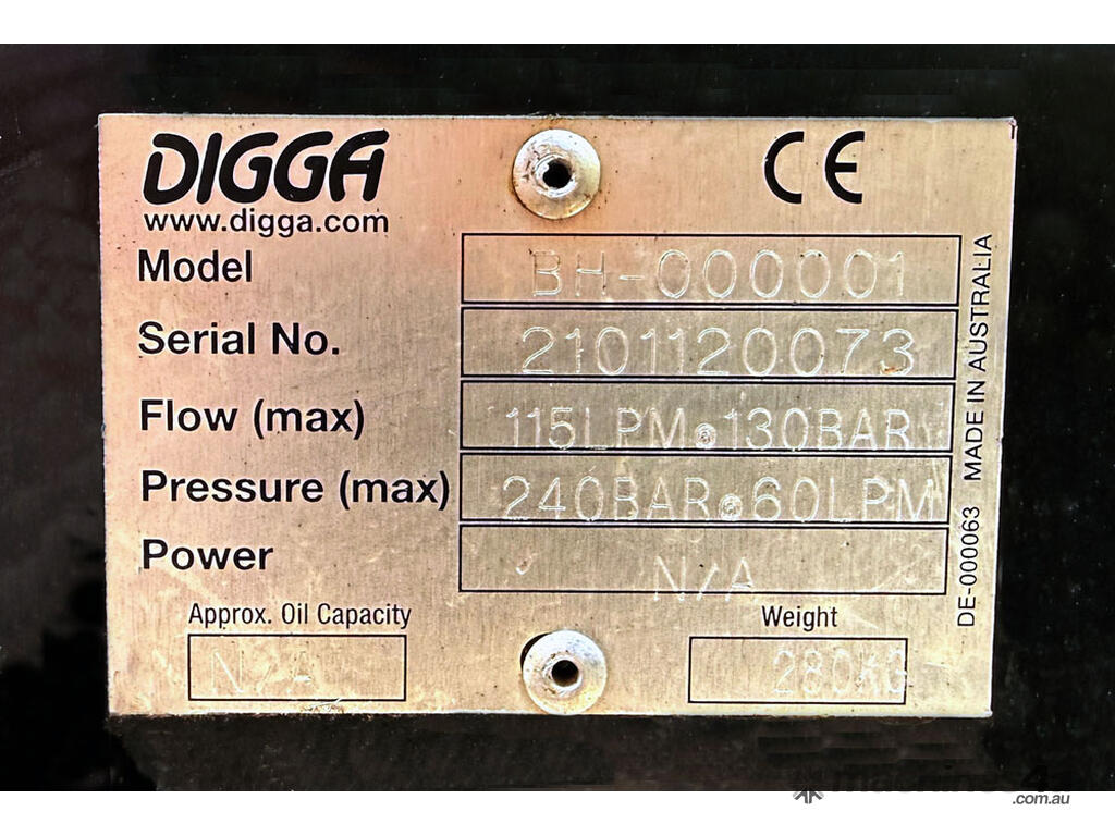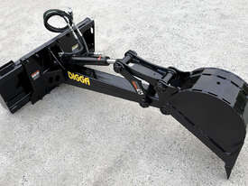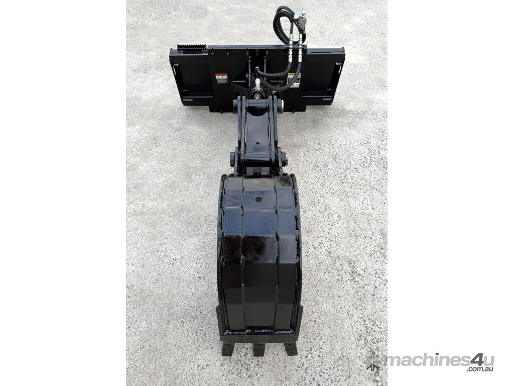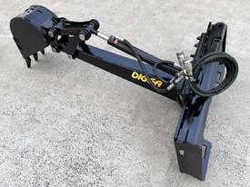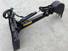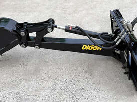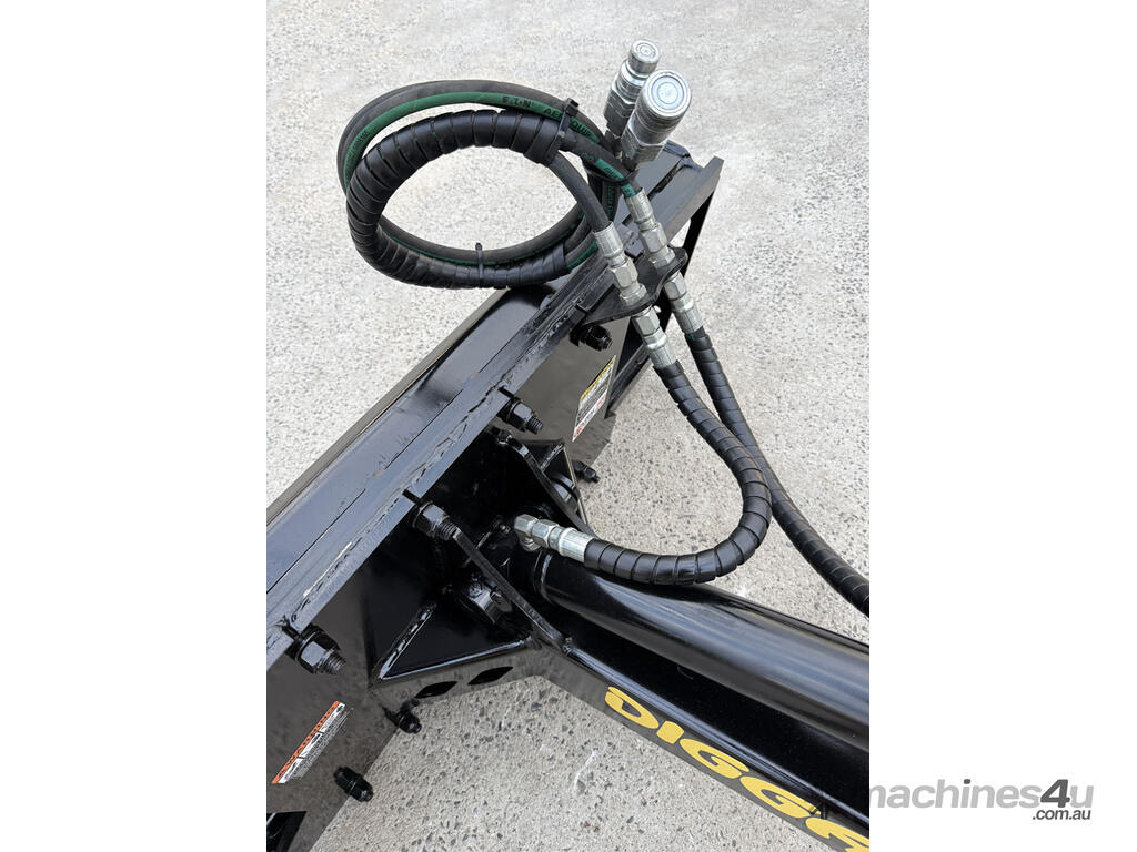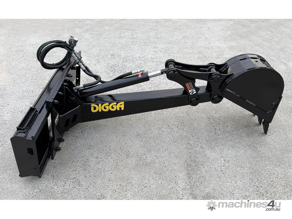 Digga front hoe for skid steers (skid hoe) – excellent condition (near new) – flat-face couplers – 300mm bucket – digs trenches up to 1.7m deep with a skid steer – often eliminates the need for other machines.