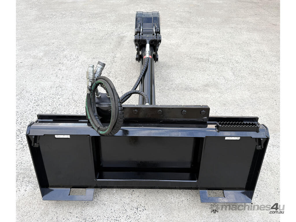This attachment has a Universal hitch (1135mm wide) used across a range of skidsteers including Caterpillar, ASV, John Deere, Clark, Case, Kubota, Bobcat, Cougar, Terex, Gehl, Mustang, Komatsu, New Holland, Takeuchi, JCB, Volvo and Toyota Huski (where a universal hitch has been specified on purchase).