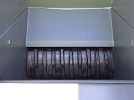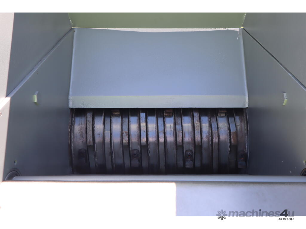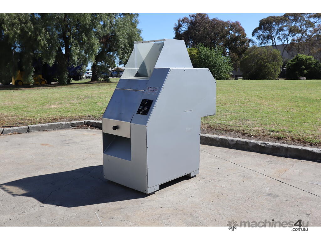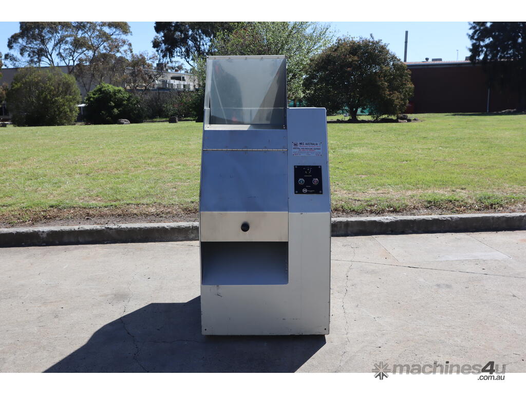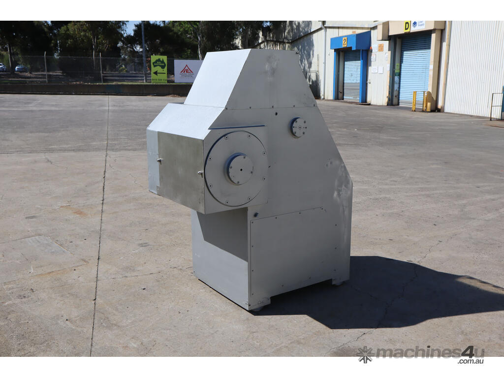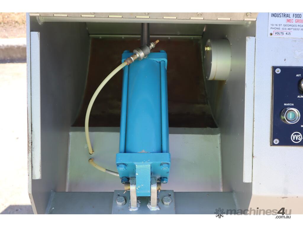 Industrial hogger designed for breaking down meats and/or other food products into manageable chunks prior to grinding, mixing, or further processing etc. The machine features a hydraulic ram and a heavy duty rotating drum. Built with a robust enclosed steel body and fitted with simple button controls.