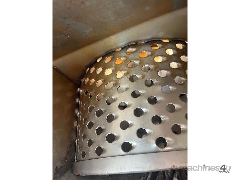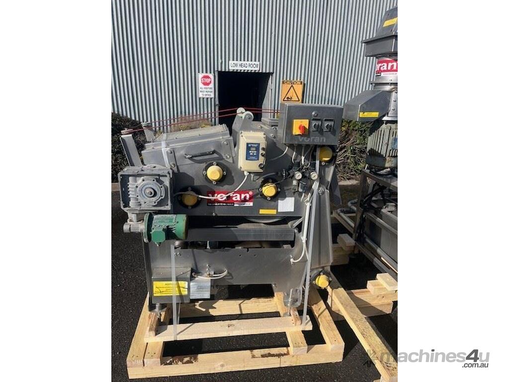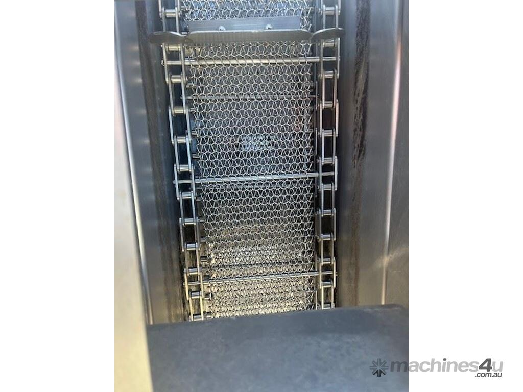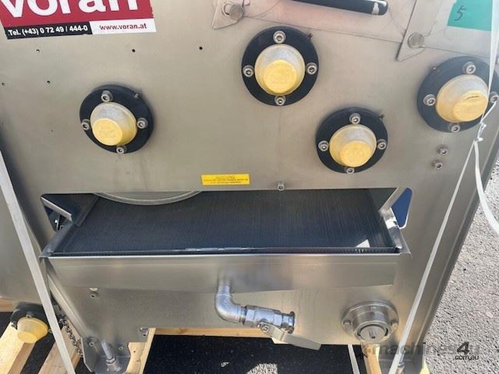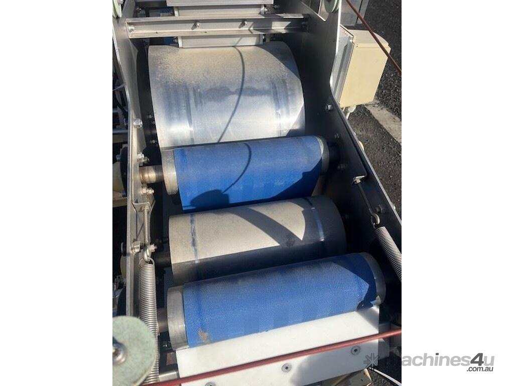 This line consisist of three major pieces of equipment. Stainless steel washer with incline conveyor. Wash trough 2m long x 700mm wide. Incline cleated belt 400mm wide. The fruit/veg is loaded into the wash trough which is full of water, the blowers push the product towards the incline belt, it travels up the cleated belt into the next section. After washing the produce is loaded into the incline conveyor