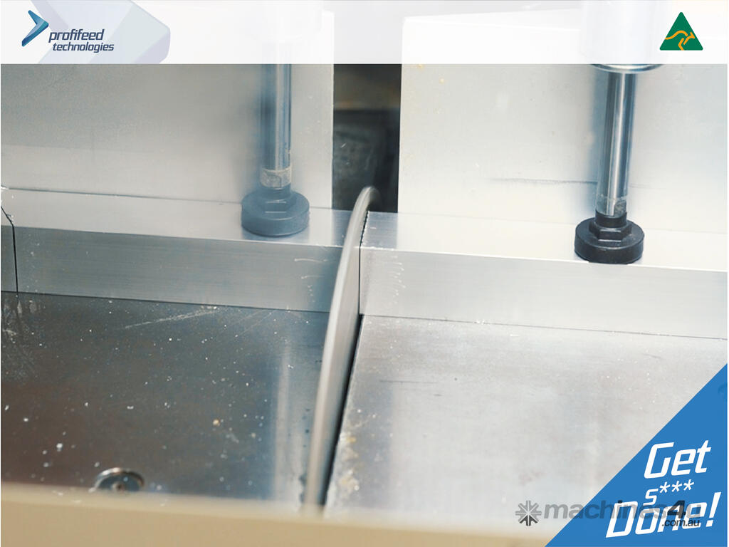 Optional fully automatic inline optimiser. Automatic measuring of aluminium profile lengths using a laser sensor and on-the-fly job list optimisation against the length measured for minimised wastage in offcuts. Automatic printing of job / part number labels for each part produced (optional).
