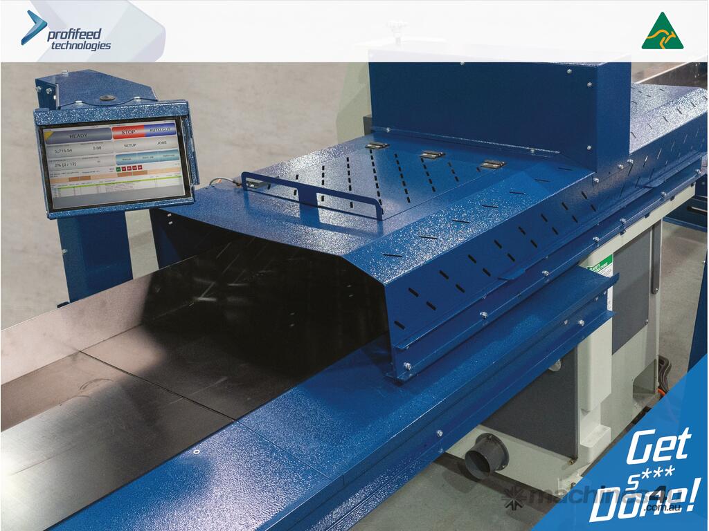 Optional fully automatic inline optimiser. Automatic measuring of timber lengths using a laser sensor and on-the-fly job list optimisation against the length measured for minimised wastage in offcuts. Automatic printing of job / part number labels for each part produced (optional).