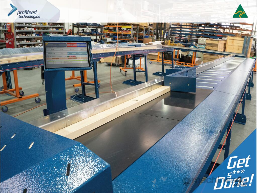 Optional fully automatic inline optimiser. Automatic measuring of timber lengths using a laser sensor and on-the-fly job list optimisation against the length measured for minimised wastage in offcuts. Automatic printing of job / part number labels for each part produced (optional).