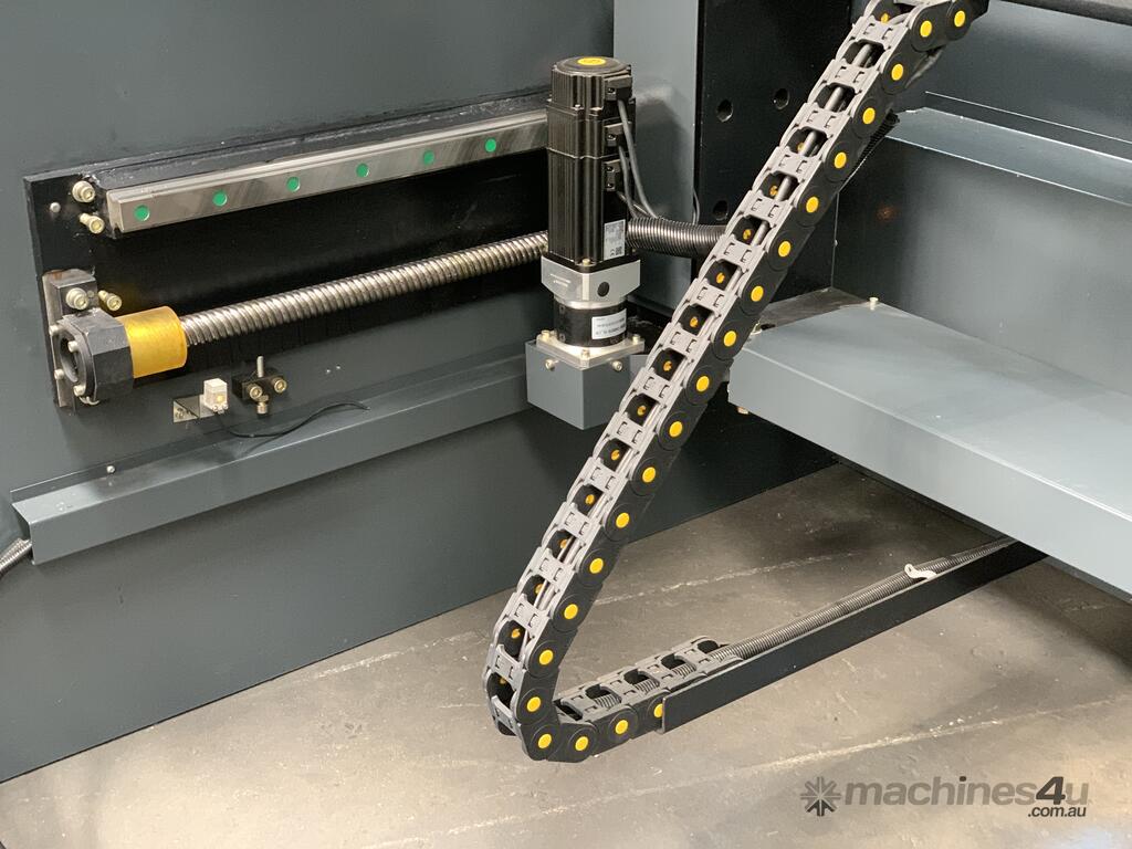 ?CNC controlled back gauge with ball screw spindles, ball guides and AC or DC servo motors