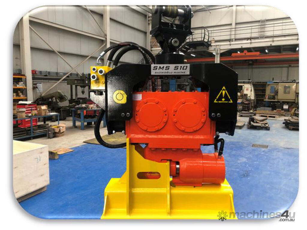 SMS vibratory hammer launched one of the smallest excavator mounted vibratory hammers in world. The SMS S-10 model Mini Vibro hammer is very unique and special for small size pile driving applications. Suitable for 4-10 ton class mini excavators, backhoe loaders and mini loaders.