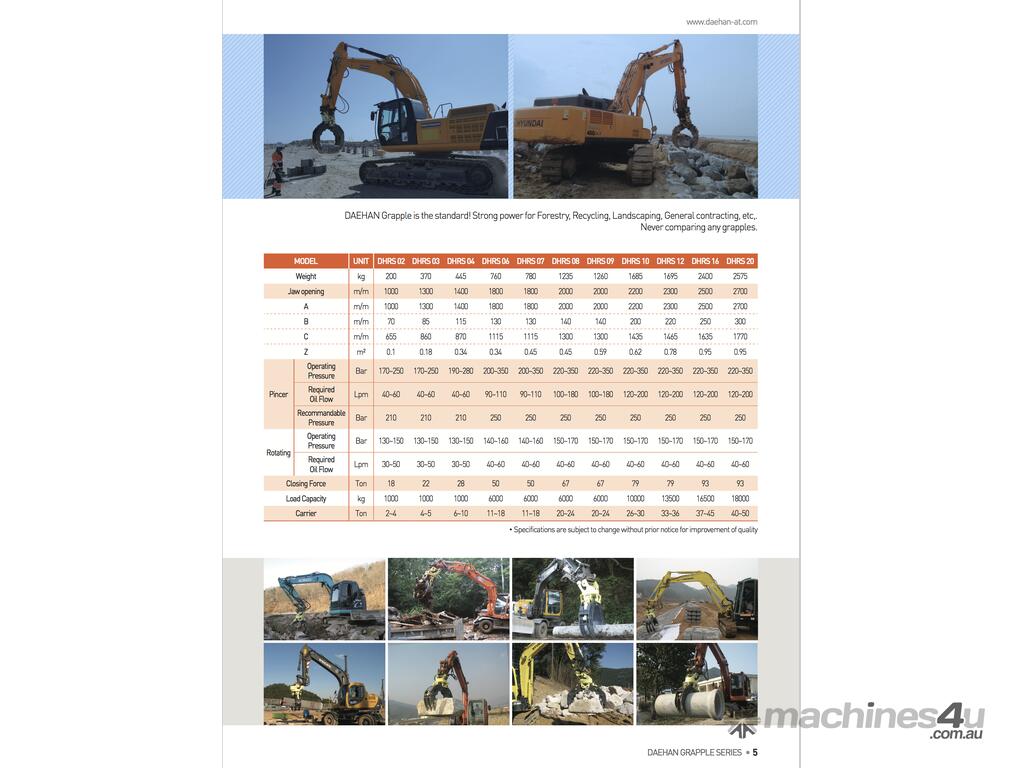 Contractors in Forestry, Recycling, Landscaping and General contracting all appreciate the versatility of DAEHAN's power rotating grapples for their various configurating options.