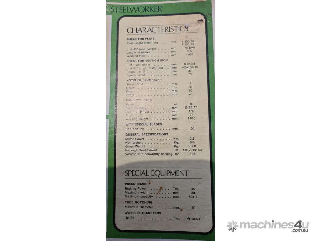 This Geka Minicrop Steelworker is a compact and versatile machine, ideal for a wide range of steel fabrication tasks. Known for its durability and efficiency, it is a great addition to any workshop.