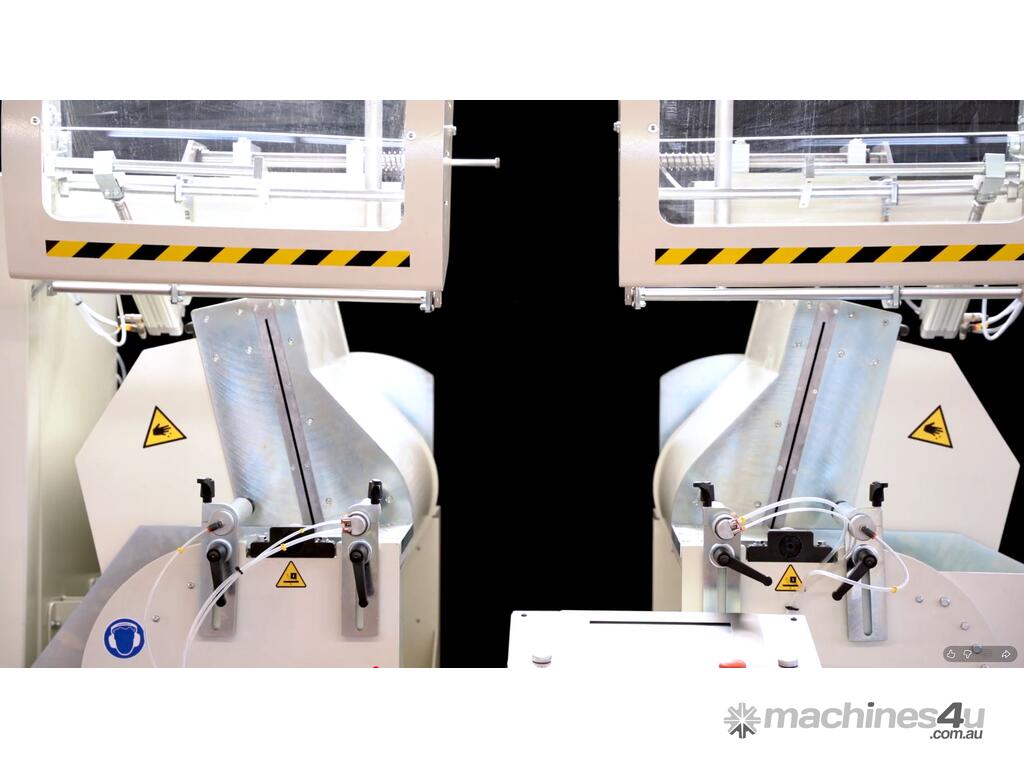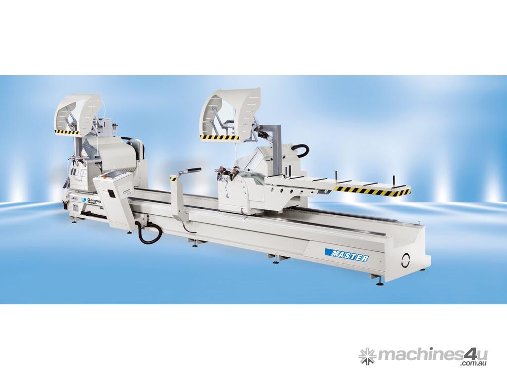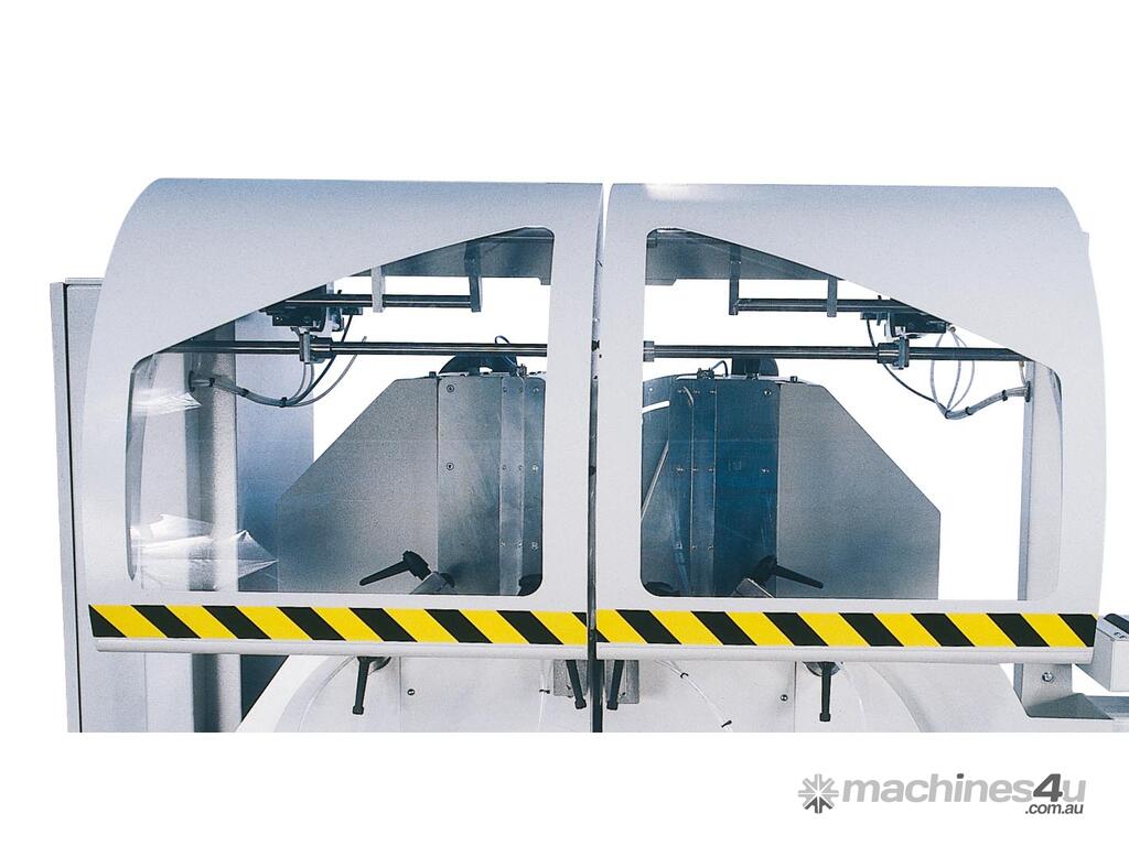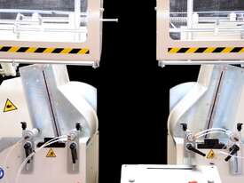 4M to 6M double head cut off saws with fixed left and right mobile head with automatic movement and automatic infinite adjustment of blade angle via servo drive.