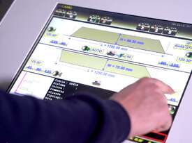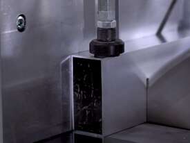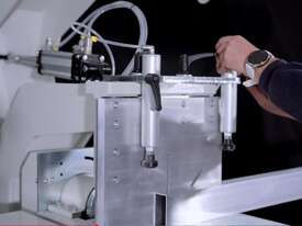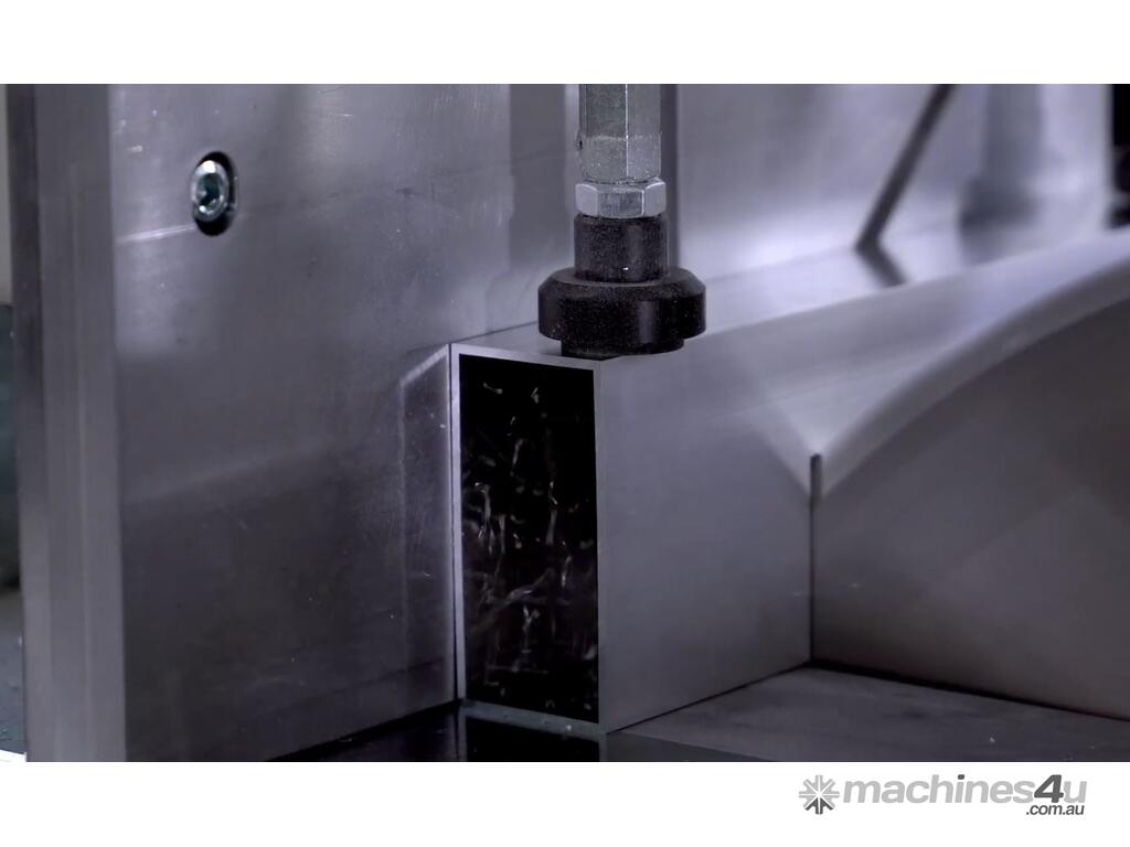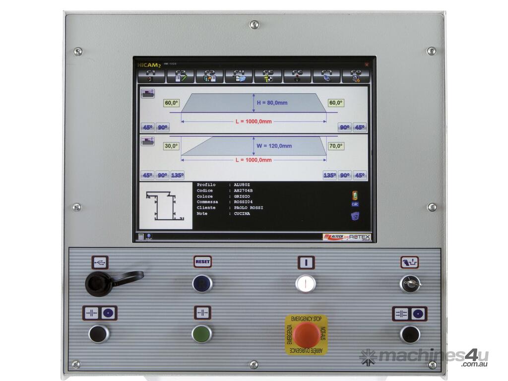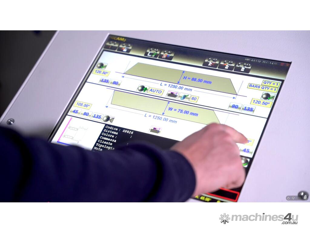 * Lubrication by micro drop with pure oil, full protections, cutting areas with automatic raising/closing safety head, kit vertical pneumatic clamps, software of the machine completely graphical-colour display Touch screen video 17’’.