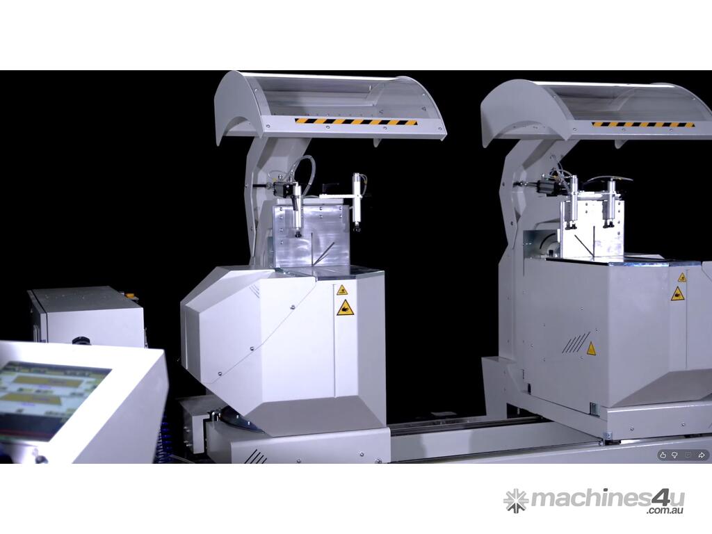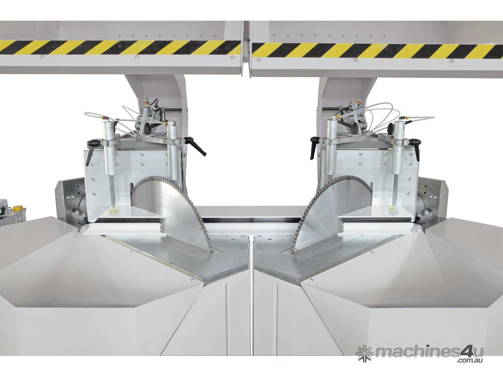 * High quality double head cutting off machine with a fixed sawing head on the left and automatic right head movable by numeric control with upstroke blades.