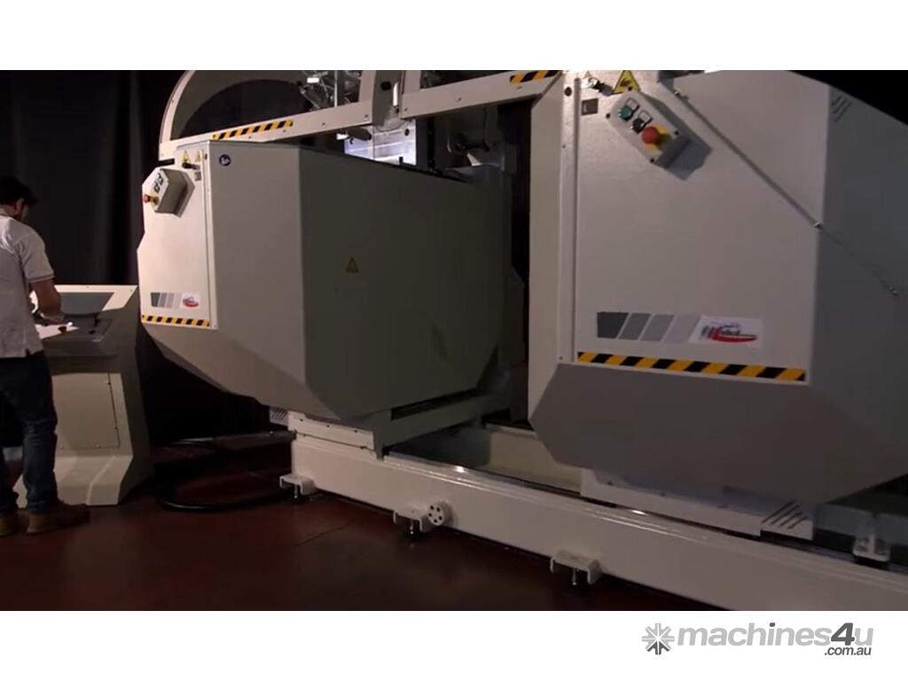 * High quality double head cutting off machine with a fixed sawing head on the left and automatic right head movable by numeric control with upstroke blades.