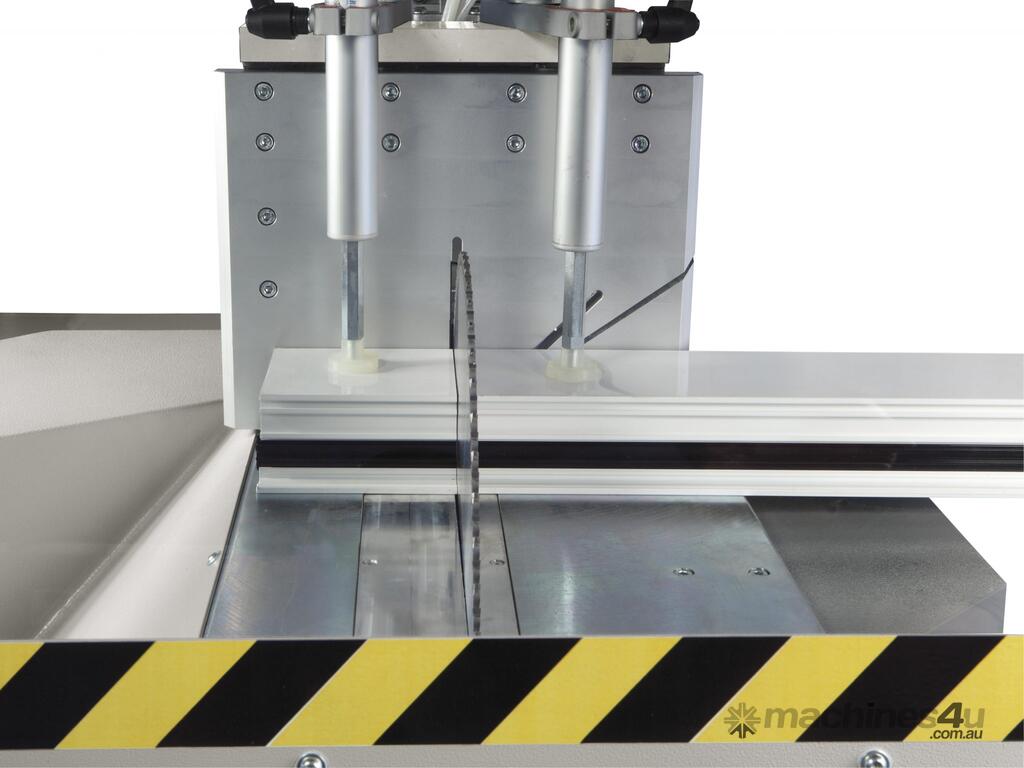 Venturi lubrication system Worktable with mechanical stops for quick angle selection (45°/90°).
