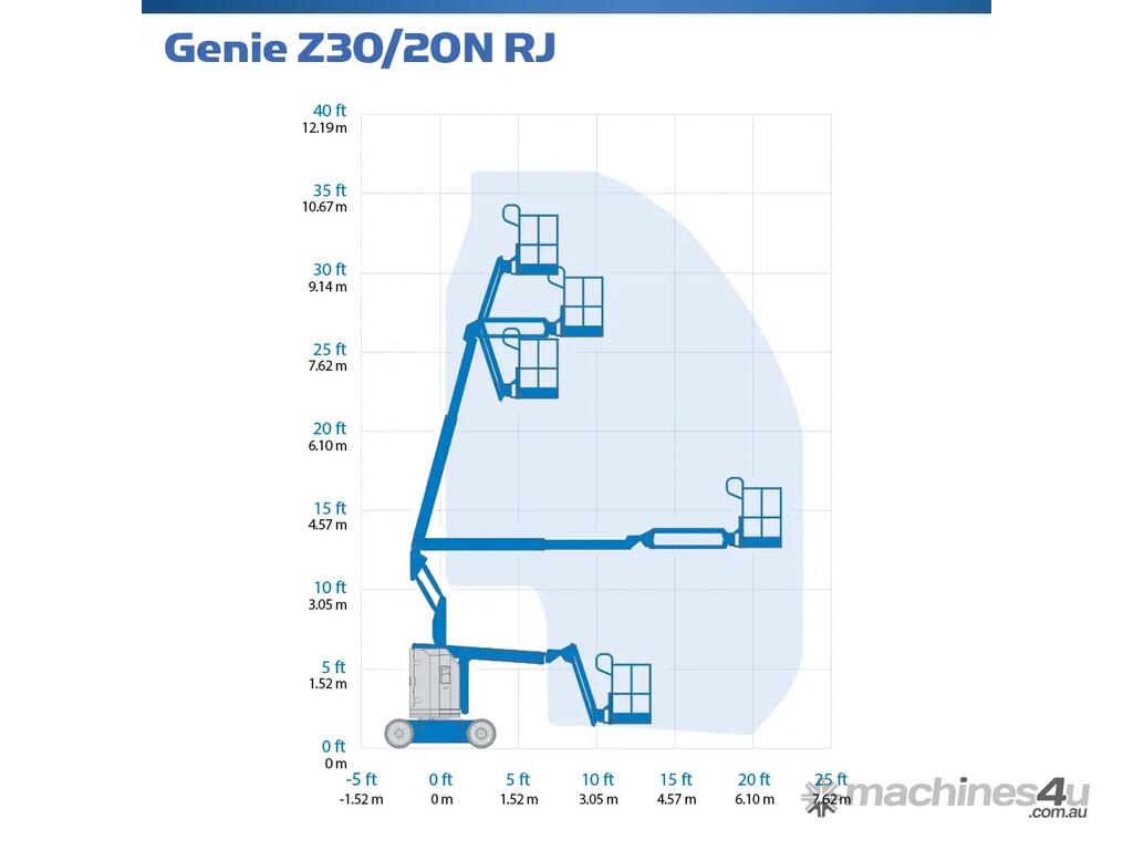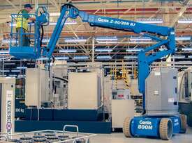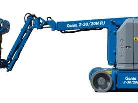 With its new-generation AC power system, the Genie® Z®-30/20 N RJ electric articulating boom lift is a quiet, emission-free, cost-efficient solution ideal for sensitive, congested and urban jobsites. For increased versatility it features a rotating jib offering industry-leading horizontal rotation as well as standard vertical reach. Narrow dimensions make it easy to drive through standard doorways, to work around obstacles and access overhead tasks from aisles or areas where space is limited.