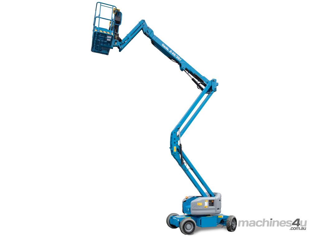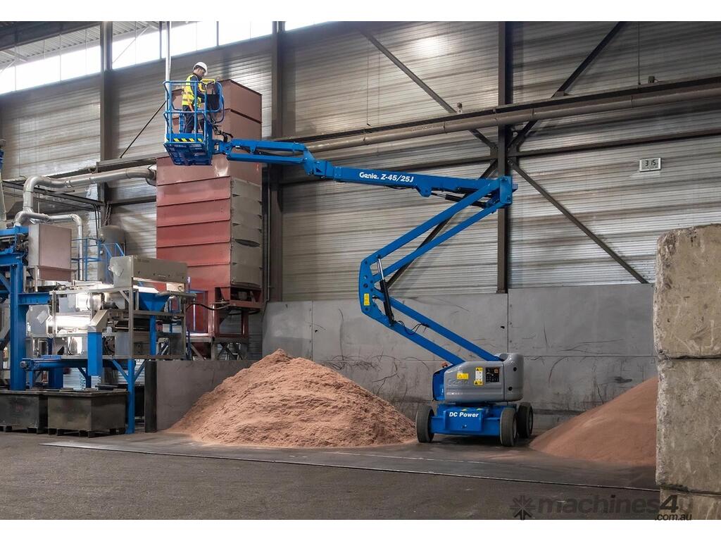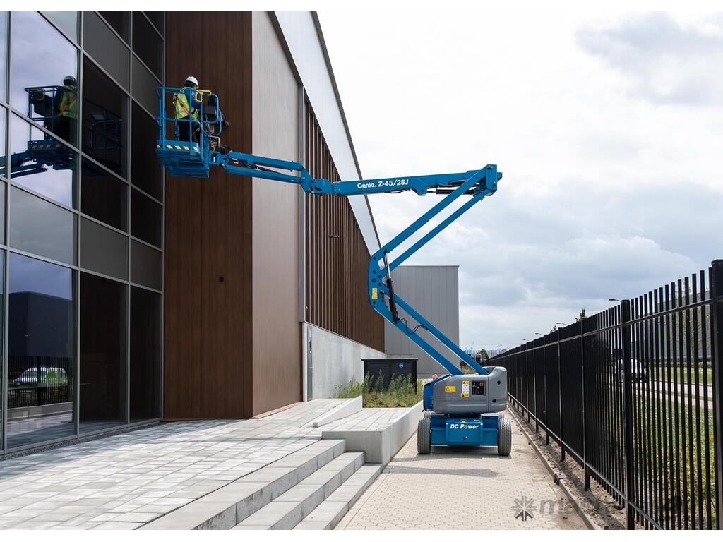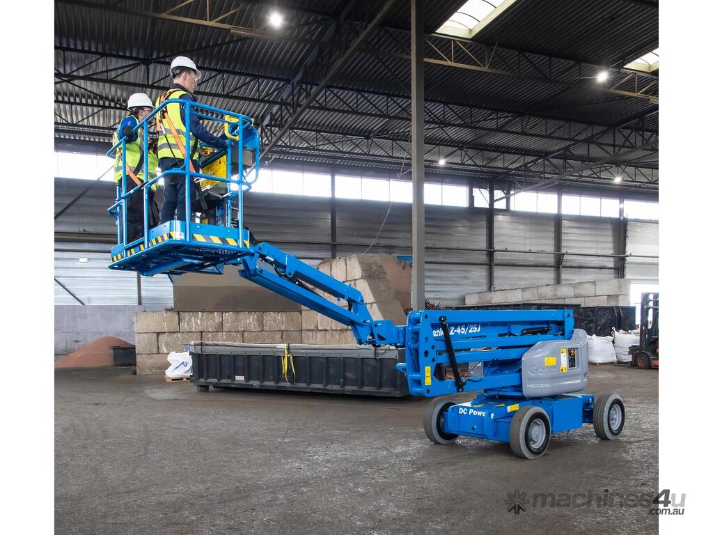 The Genie® Z®-45/25J DC electric articulating boom lift offer quiet, emission-free operation. With this Genie electric boom lift, operators can easily work close to buildings or around obstacles, and access overhead work from aisles and other congested areas.
