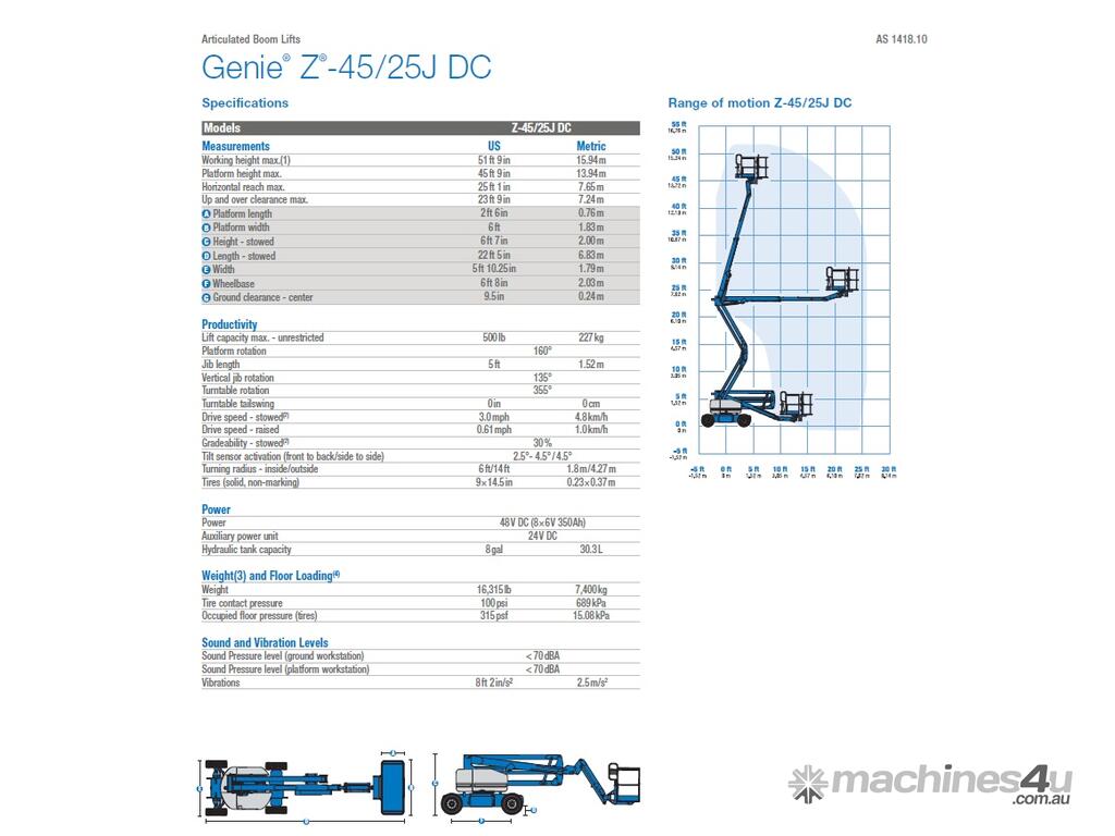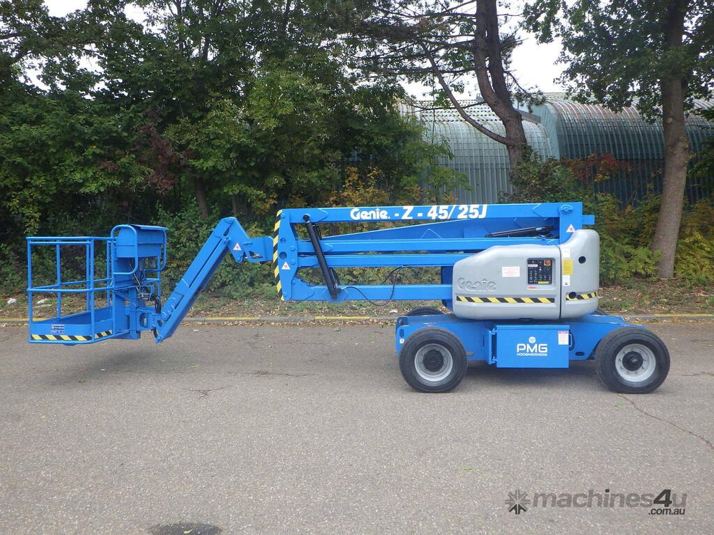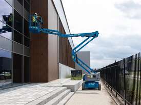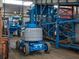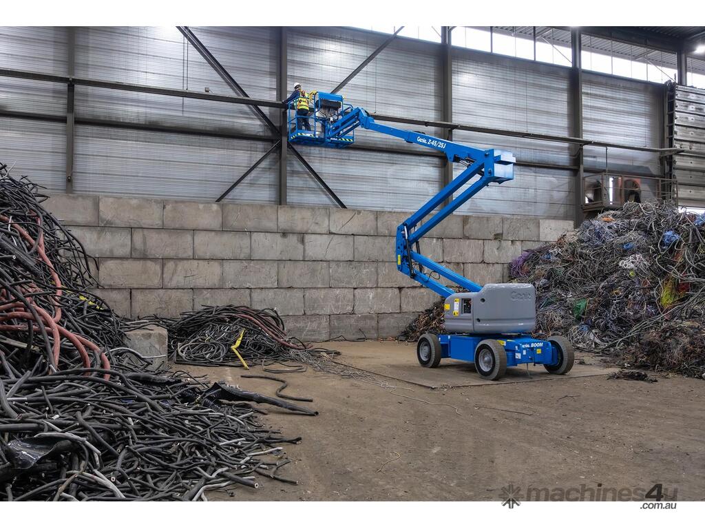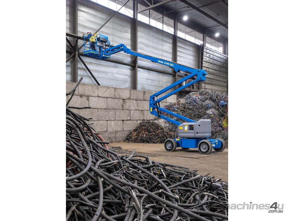 The Genie® Z®-45/25J DC electric articulating boom lift offer quiet, emission-free operation. With this Genie electric boom lift, operators can easily work close to buildings or around obstacles, and access overhead work from aisles and other congested areas.