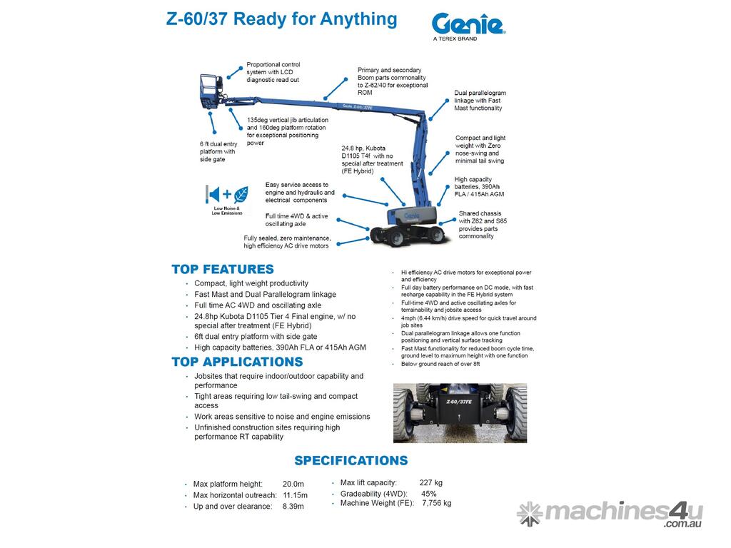 GENIE – 60FT – HYBRID – Z60FE - KNUCKLE BOOM LIFT - GENIE – ARTICULATING BOOM – 4WD - CHERRY PICKER