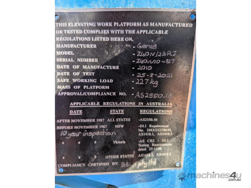 Our machines have been rebuilt to Australian Standards AS2550.10 and can be supplied with full certification on delivery.