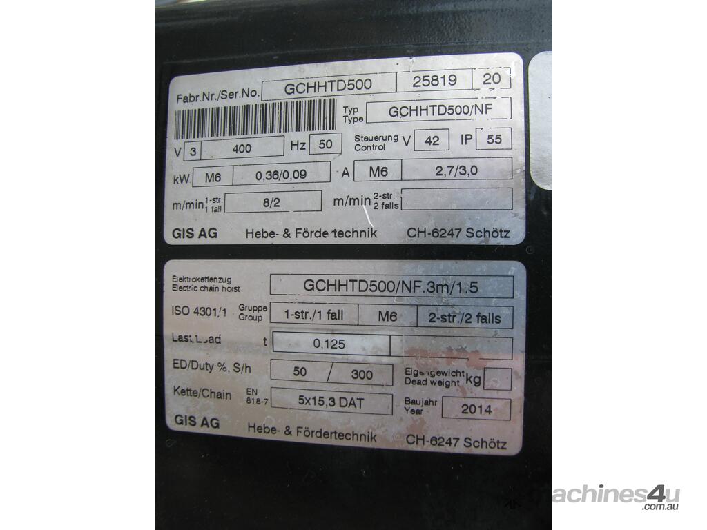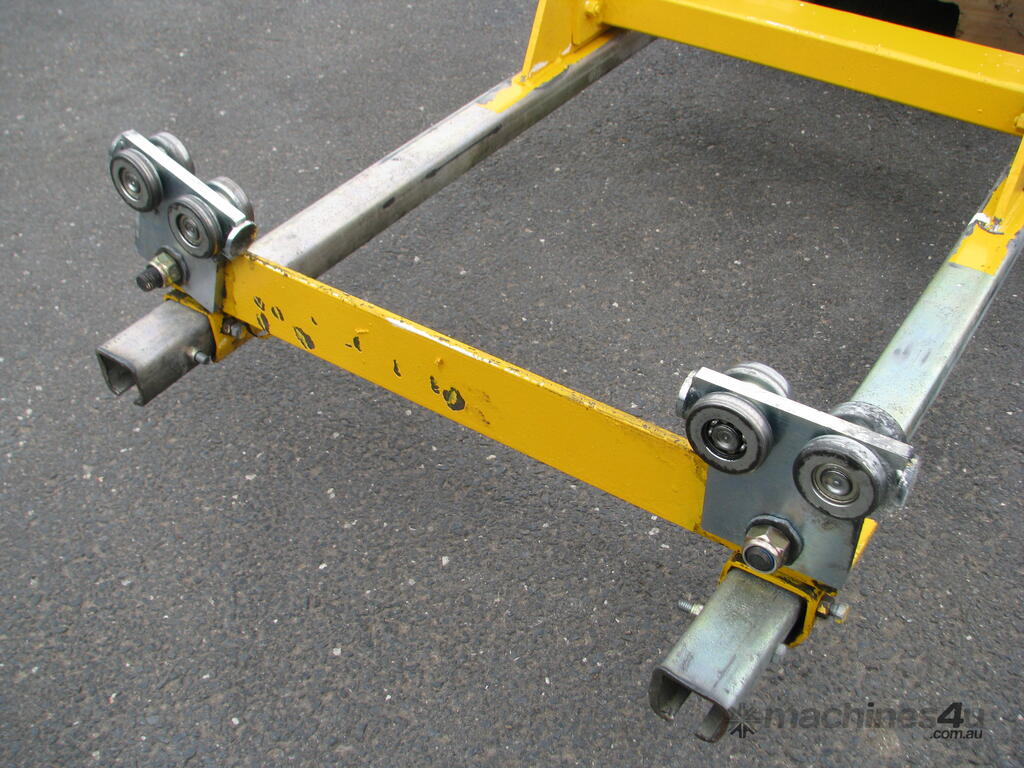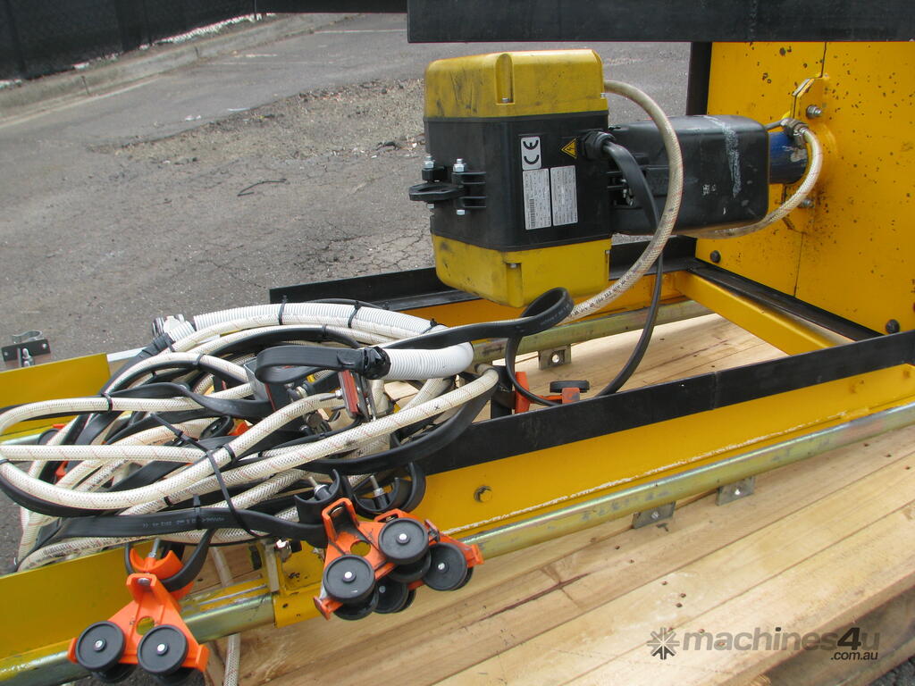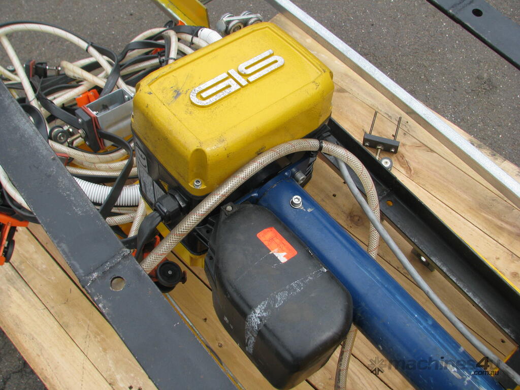 It comes with rails that the hoist mounts to. It has a travel of 3.8m. The railing also has travel wheels so you can have it travel on the other axis if you build rails for it.