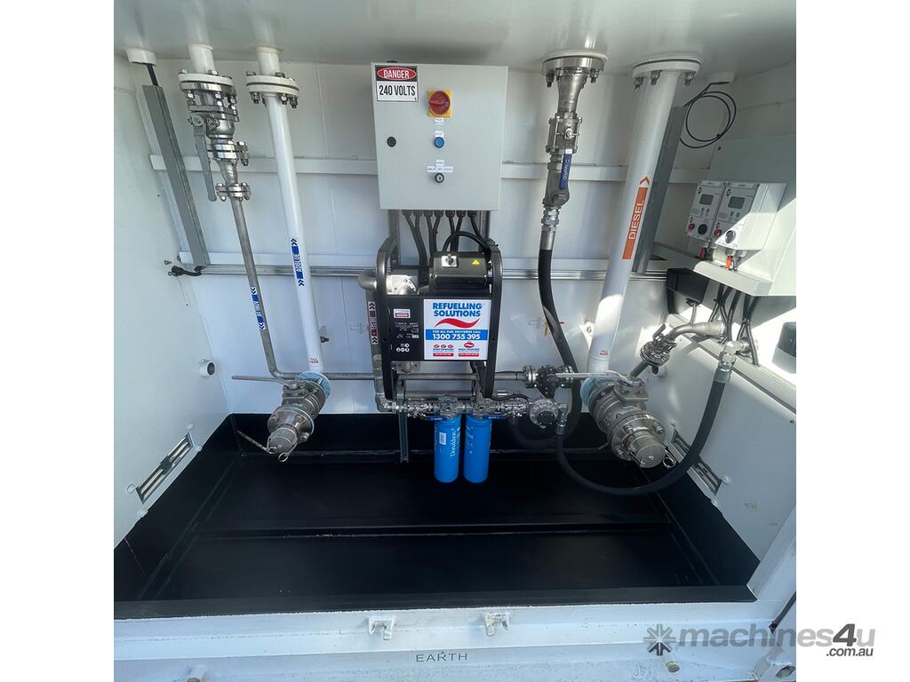 Choice of Integrated or Clip On Bunded (Contained) Pump Bay Housing featuring removable side panels to allow for simple multiple tank connection for tank farm applications. The bunded pump bay housing is supplied with heavy duty lockable container doors with weather proof seals.