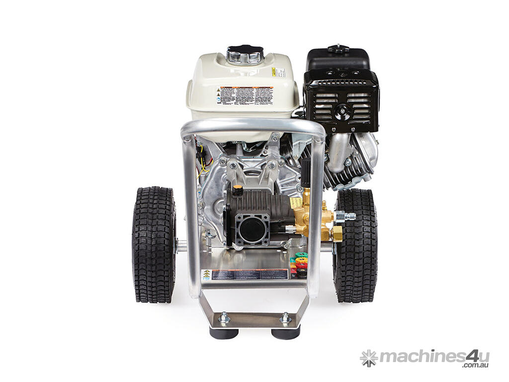Sporting a Honda GX270, AR Triplex Plunger Pump with an output of 11.4lpm & 3200 PSI, this is your lightweight (34kg) performer. This pressure washer is a direct drive system.