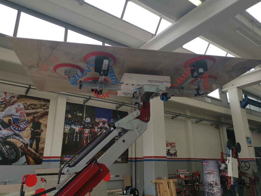 • Equipped with six pneumatic suction cups for stable glass handling.